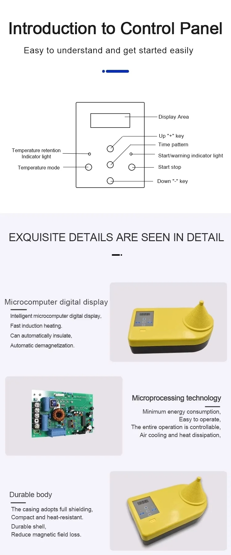 High efficiency, small workpieces can be heated to 100 degrees within 5-15 seconds.