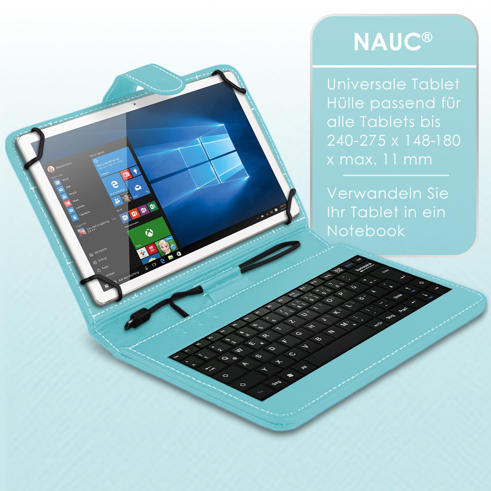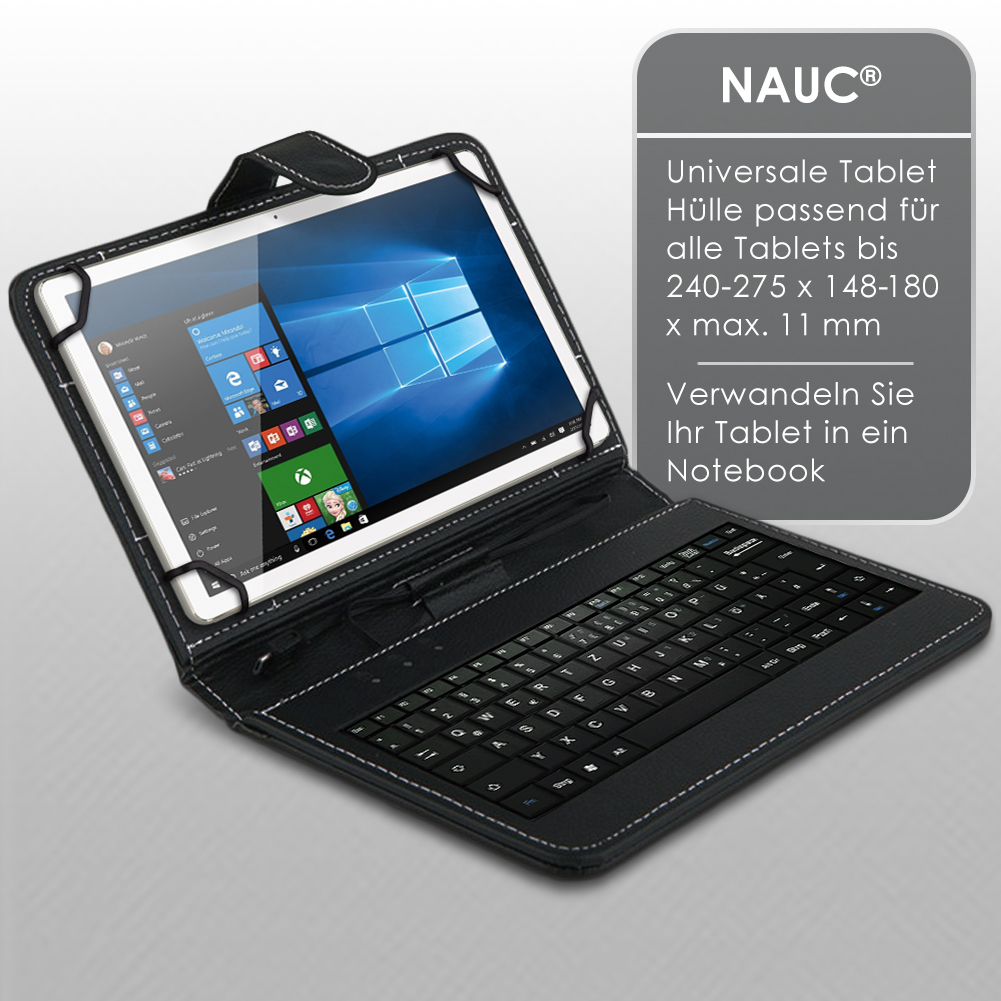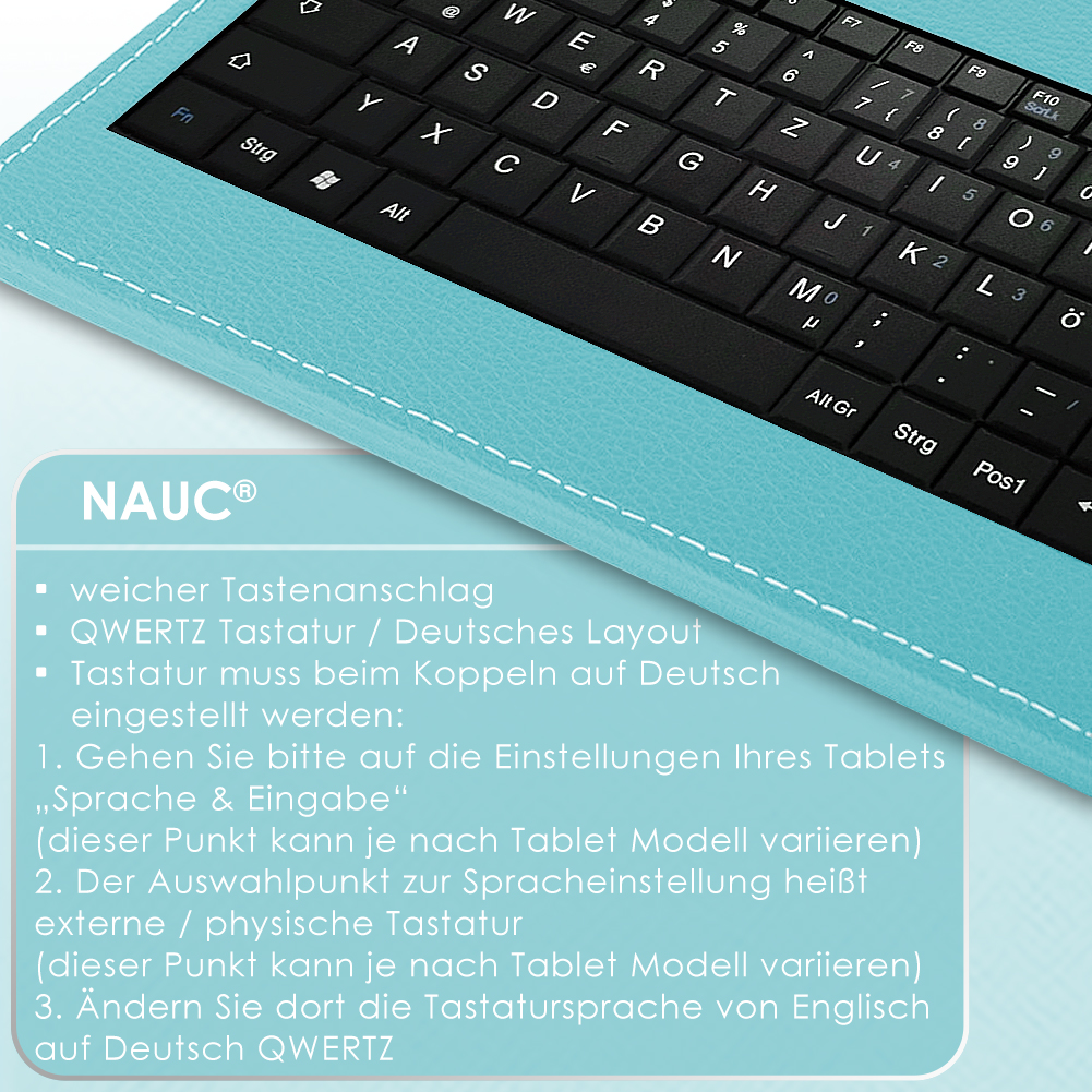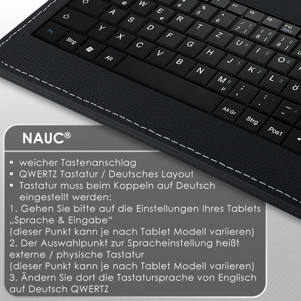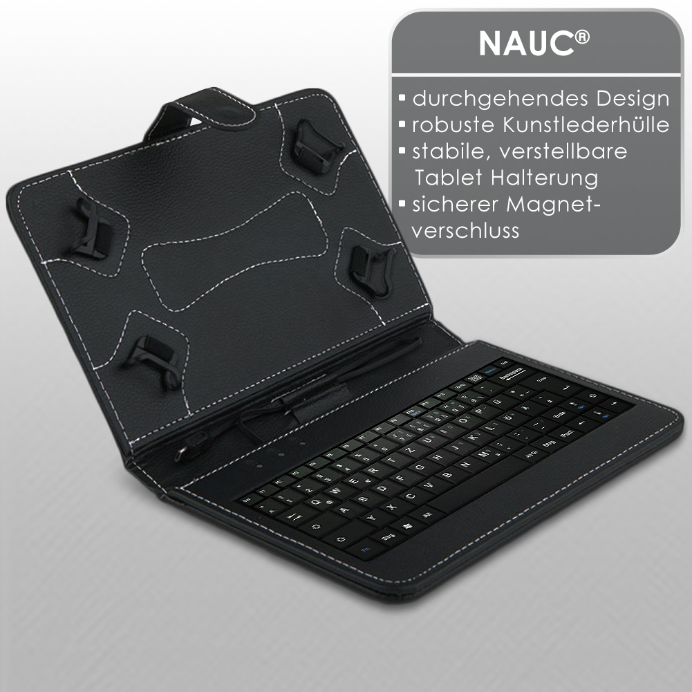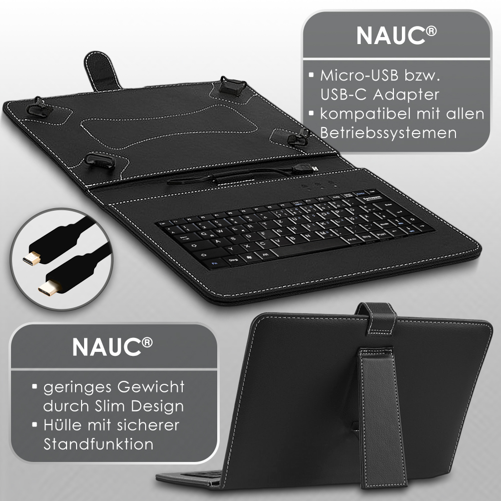Lieferumfang: 1 QWERTZ Tastatur mit integriertem Micro USB Kabel + USB-C Adapter kompatibel mit Doogee Tab A9 / A9 Pro 10.1 von NAUC