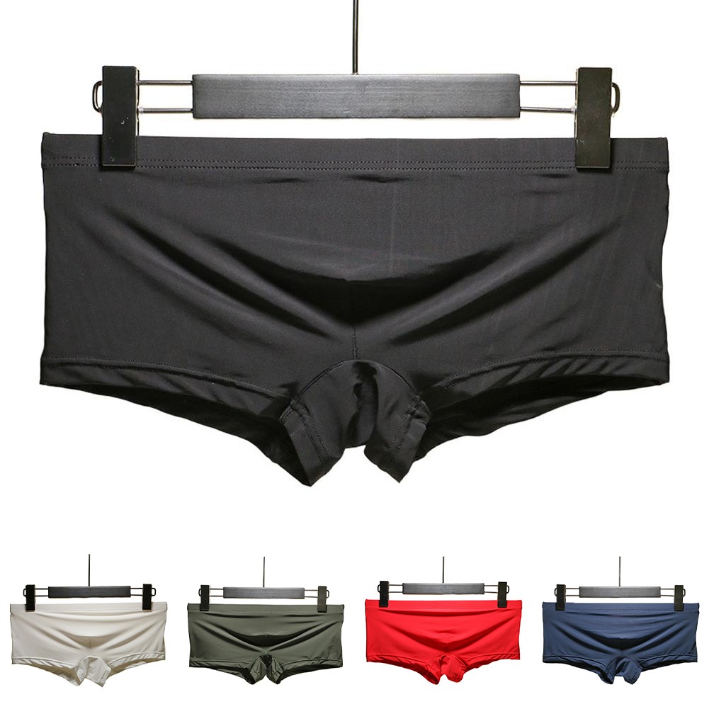 Breathable Ice Silk Men Underwear Boxer Briefs with Pouch High Stretch