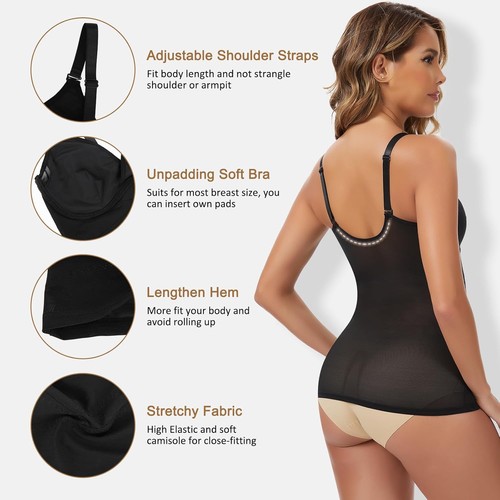 V Neck Shaping Camisole: Ladies compression vest top with soft bra design, you can insert own paddings. Adjustable shoulder straps body shaper helps to adjust to fit your torso length.