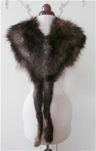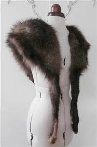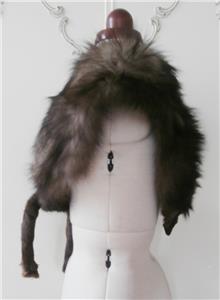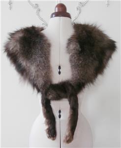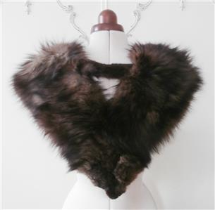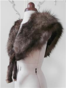 This is a gorgeous genuine, fox fur collar! It is shaded grey-brown and is composed of two pelts, meeting at a point at the back, with a 'cross-bar' of fur across the back, holding the two sides in place. This 'crossbar' isn't quite even, but could be adjusted in some way. Each side of the front has a long leg section, complete with claws! There is a single fur hook closure, but you could also wear it open, and the legs can be tied loosely, or not, as you prefer. The collar is fully lined with a black satin lining. This is an excellent quality item and given it is around 80 years old, is still nice and full. It does need airing as it a bit musty from storage, but it's still a very impressive piece! Stunning with a lovely Vintage evening dress or coat for a special night out, or worn across the shoulders Jon Snow, Game of Thrones style!