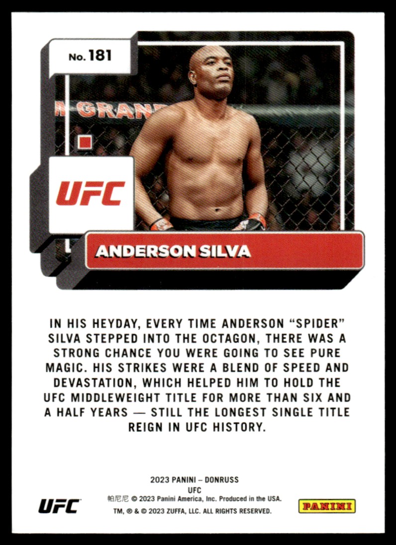 | 2023 Donruss UFC Anderson Silva #181 14513 | ||||||||||||||||