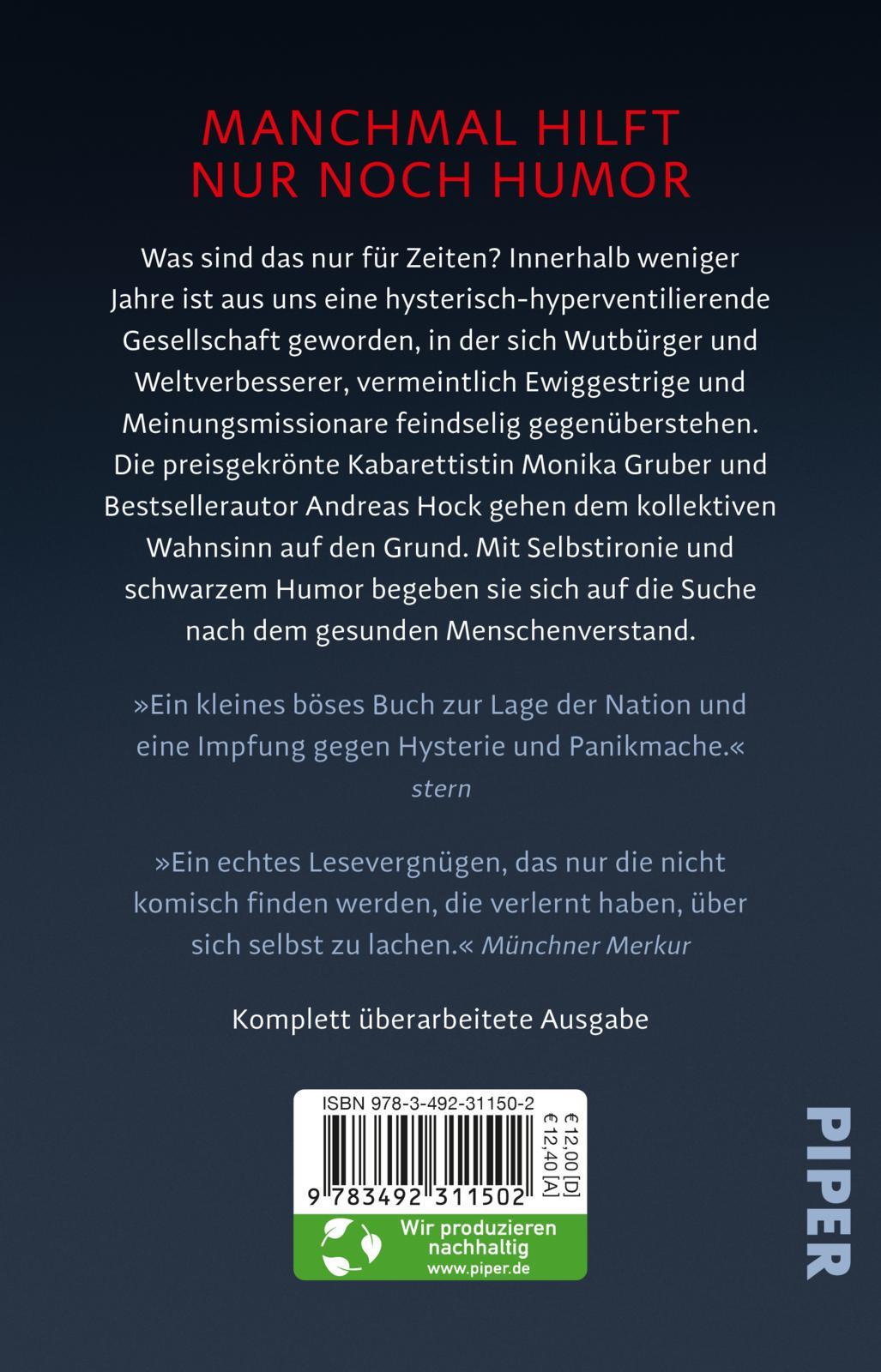 Die preisgekrönte Kabarettistin Monika Gruber und Bestsellerautor Andreas Hock gehen dem kollektiven Wahnsinn auf den Grund - und stellen fest, dass er seine Ursache vor allem in der Ignoranz und im Egoismus einiger Weniger hat.
