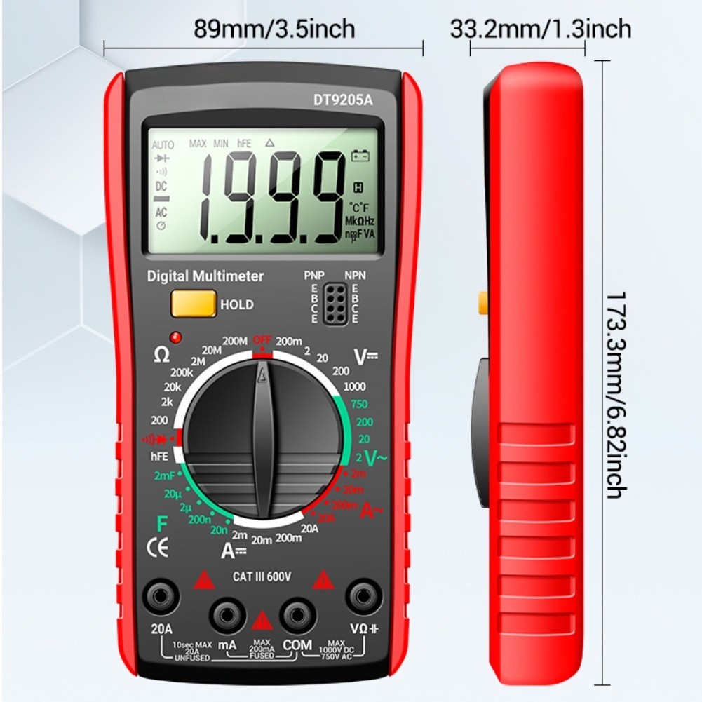 DT9205A Digital Multimeter Voltage Current Resistance Tester with Backlight