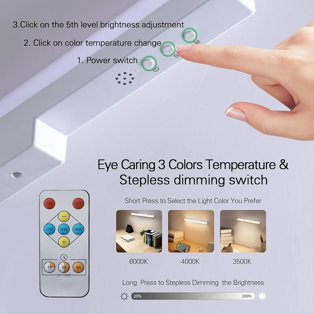 User-friendly: The lamp body has 3 switch buttons and Each lamp comes with an infrared remote control which can easily switch color temperature and brightness. The overall luminous surface is large and the brightness is high. Equipped with 2 batteries, a total of 4000mAh high-capacity battery, with a battery life of over 12 hours.