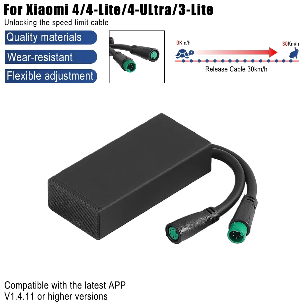 Features: 1.Unlock Speed Limit Cable: Effortlessly release speed limits to enhance your riding experience with ease. 2.Quick Release Speed Limit Cable: Ensures stable connection and seamless usage. 3.No Complex Setup Needed: Supports the latest APP V1.4.11 and above; activate instantly without extra configuration. 4.Unlock Speed Limit Cord: Achieve a maximum speed of 30km/h when fully charged. Enjoy high-speed rides, but note that speed decreases as battery drains. 5.Quick Release Speed Limit Cord: Utilizes original factory programs to ensure all application functions run smoothly and stably. Specification: Origin: Mainland China Main material: Plastic Product color: Black Applicable to:Xiaomi Xiaomi 4 4Lite 4Ultra MI3 Lite Electric Scooter NOTE: 1.Not suitable for sale in Germany Xiaomi 4 4Lite 4Ultra MI3 Lite Electric Scooter 2.Please confirm the model of your electric scooter before purchasing. 1*Electric scooter speed regulator
