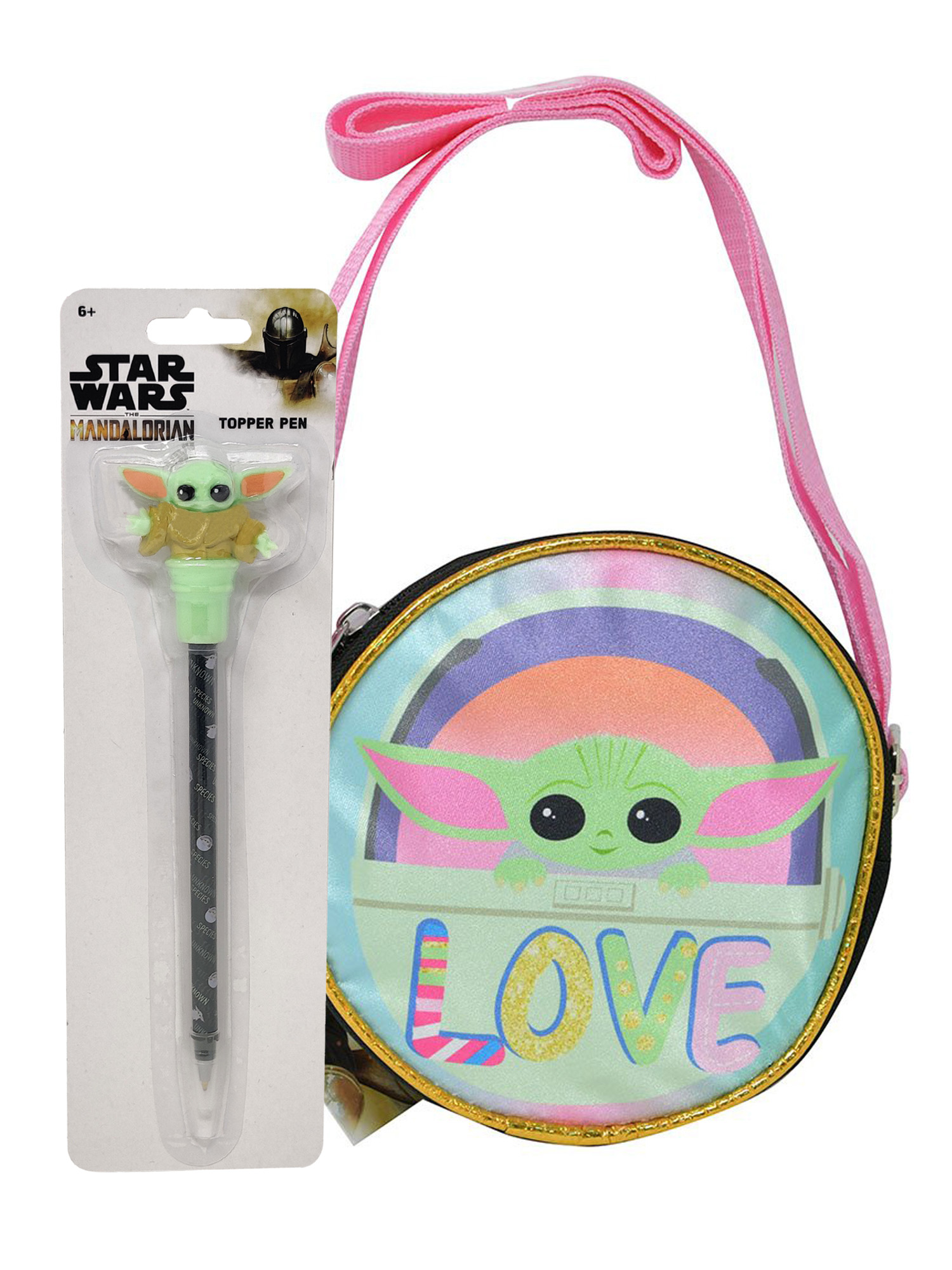 - Set Includes: (1) Star Wars Grogu Crossbody Bag Purse Zipper Round Kids Girls 6" Small & (1) Disney Star Wars The Mandalorian Grogu Baby Yoda Topper Pen The Child