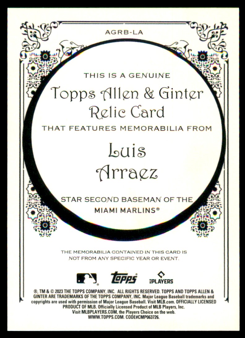 | 2023 Topps Allen & Ginter Full-Size Relics Series B #AGRB-LA Luis Arraez Miami |