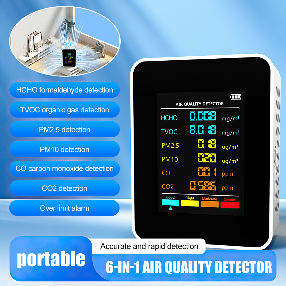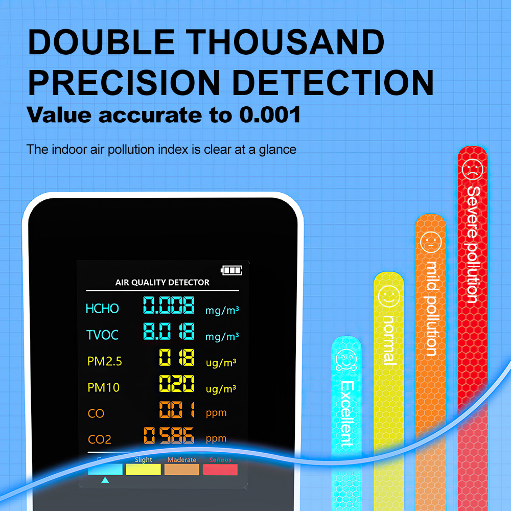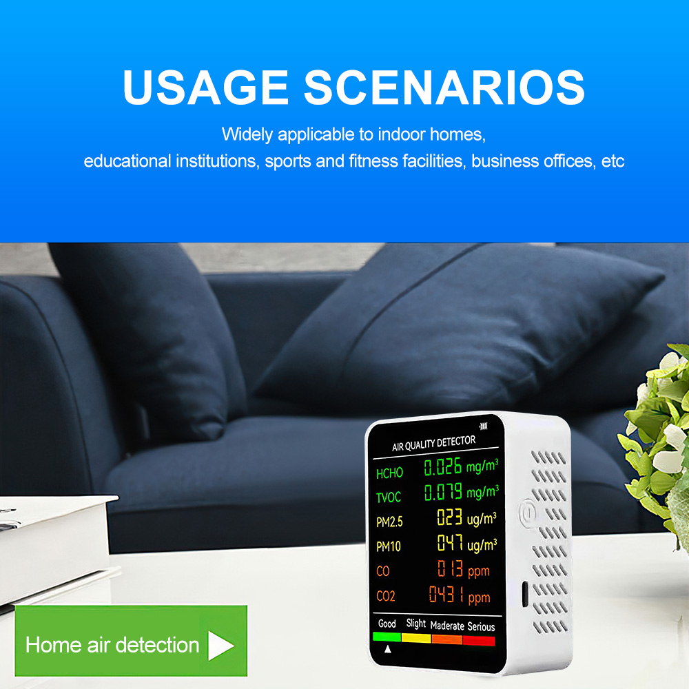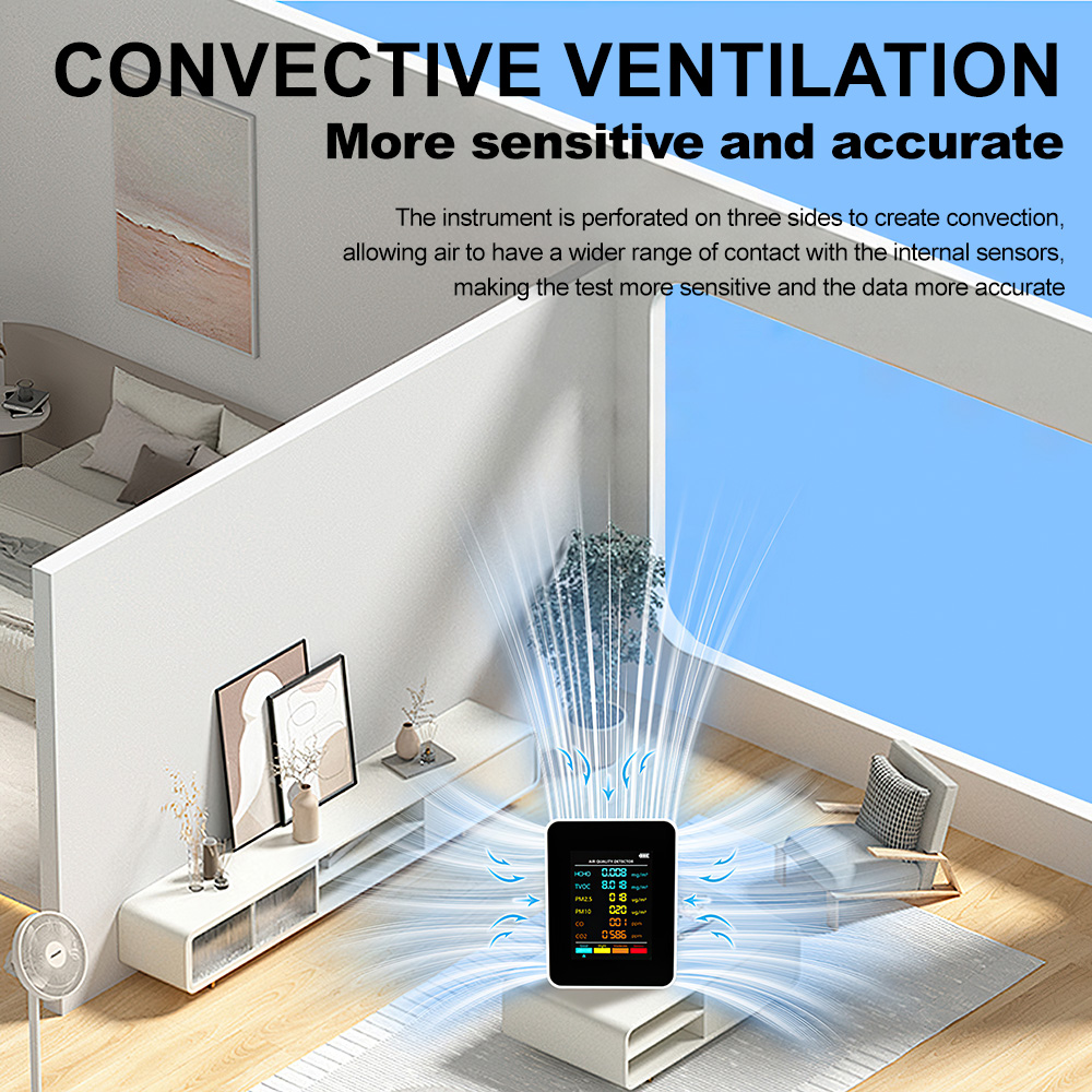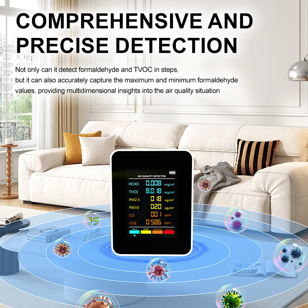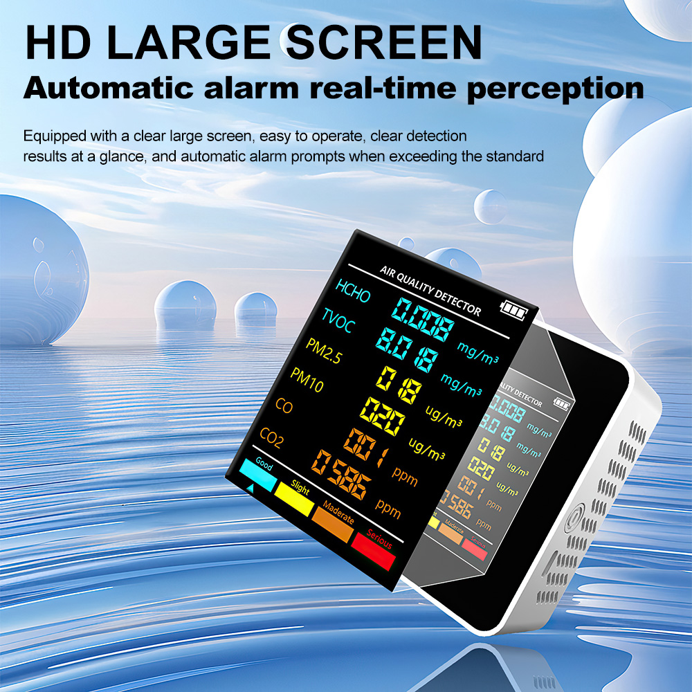 Eco-Friendly and Long-Lasting: Designed for low power consumption and long service life, the PM2.5 PM10 HCHO TVOC CO2 CO Meter is environmentally friendly, ensuring sustainable use over time.