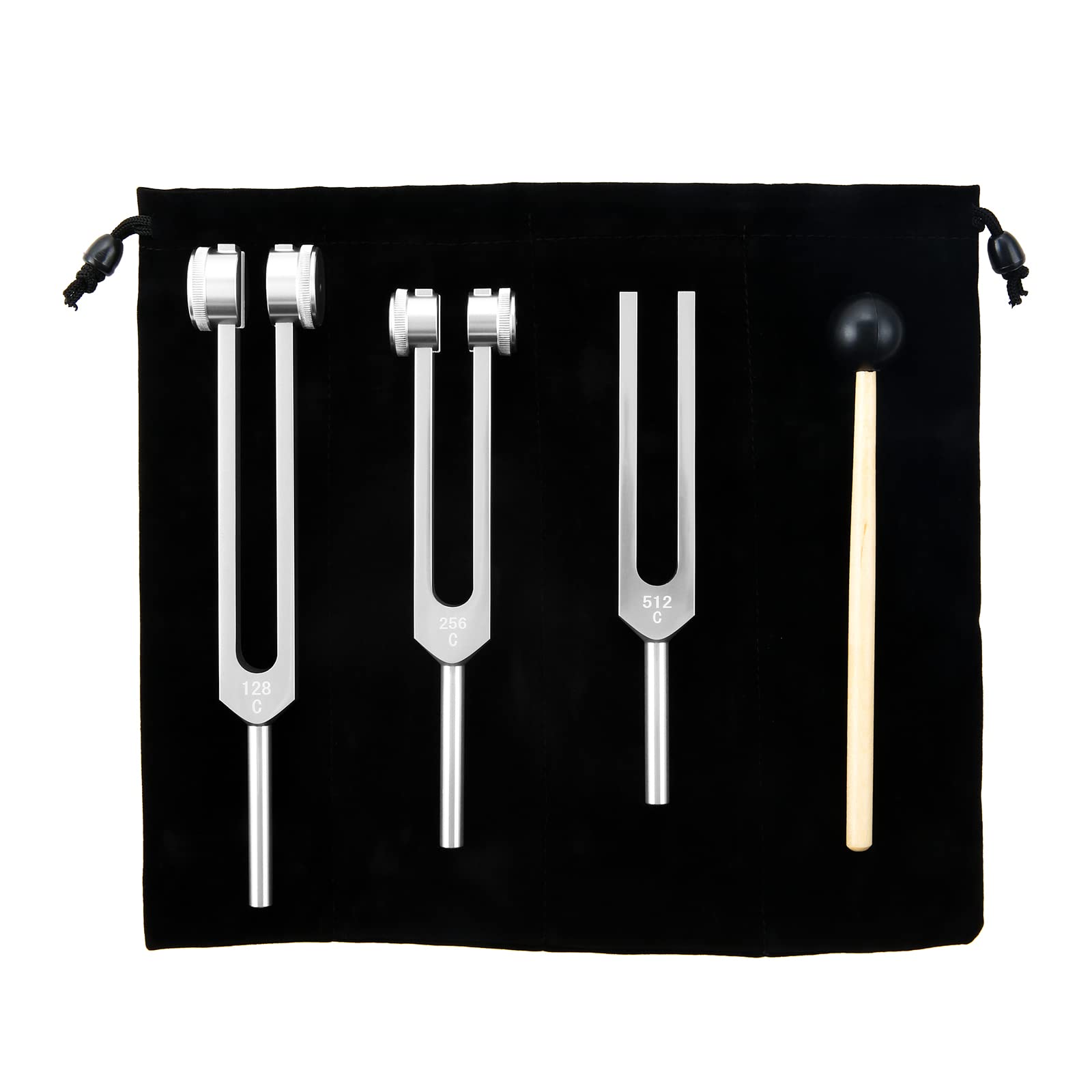 >【PREMIUM QUALITY】: The 128Hz、256Hz、512Hz tuning fork set is made of high quality aluminum alloy material, high precision, light in weight, sturdy and durable and stainless, non-magnetic, superior performance and consistent frequency accuracy. The tuning fork produce clear tones, longer vibration sound and accurate tuning.
