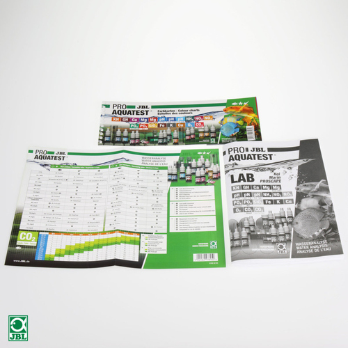 Contrôle simple et sûr des valeurs de l'eau du bassin - détermination de : pH 3,0 - 10, pH 7,4 - 9, dureté carbonatée, dureté totale, sensible au phosphate (valeurs faibles), phosphate koi (valeurs élevées), nitrite, nitrate, ammonium/ammoniac, oxygène