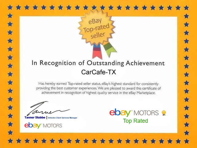| PAYMENT OPTIONS -We accept the following payment options: Cashiers Checks/Money orders, Verified funds from known financial institutions, and Cashh VEHICLE PICKUP AND SHIPPING -All shipping charges are the buyers responsibility GENERAL TERMSS -Successful high bidder should contact Car Cafe, LLC within 24 hours, or next business day after the auction has ended to make arrangements to complete the transaction.. - Within 24 hours following the end of the auction, a $500 non-refundable deposit shall be sent over-night express in the form of PayPal, Cashiers Check, or certified funds. If a deposit is not received, and an alternate arrangement has not been made, the vehicle will be made available to other potential buyers on a first-come, first-serve basis.. -All financial transactions should be completed within a reasonable period of time, usually within 7 days after the auction.. -Buyer is responsible for transportation to our location, which includes taxi fares, rental car etc. Contact us if you require any special assistance.. -Seller accepts Cashier's Check, Certified funds, or verified funds from known financial institutions, and cashh -Car Cafe, LLC discloses as much information as possible about our vehicles. We welcome pre-purchase on site inspections by competent parties. All vehicles are available for inspection by appointment. Buyer is responsible for fees and charges of inspections made.. -You are entering a legal and binding contract to purchase the vehicle described above once your offer has been accepted.. -If you are paying with a loan check, please be pre-approved on your loan before making an offer. We do not accept RoadLoans!! -Unqualified bidding, Fake bidders, Auction interference, Shill bidding, or any form of harassment can be subject to legal prosecution.. -We offer shipping anywhere in the United States. The companies we use offer a direct to your door delivery service, are fully insured and licensed and bonded. Please contact us for a quote.. FEES AND TAXESS -All buyers pay a V.I.T. (Vehicle Inventory Tax) which is 0.002256 of the purchase price (example $10,000 purchase = $22.56), a Documentary Fee, and a $90 Administrative feee TEXAS BUYERSS: There is a 6.26% sales tax. All Tax, Title, and License fees apply.. -Out of state buyers are responsible for their own taxes in their own state.. -We do provide temporary plates! |