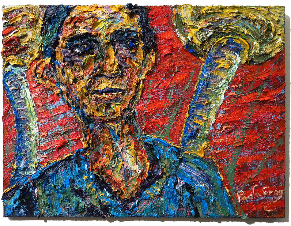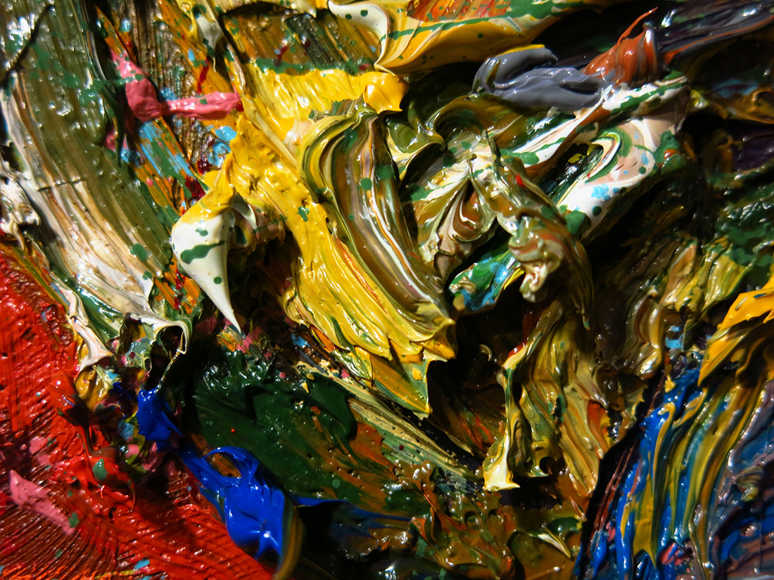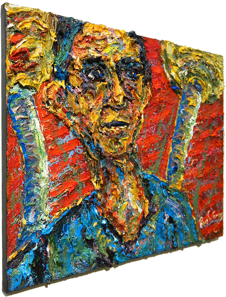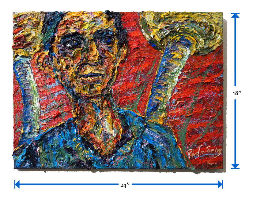 Oil Paint on canvas of 24 by 18 by 3/4 in., including hanging clip.