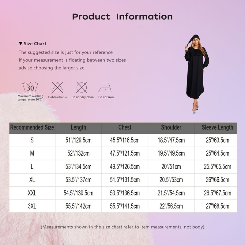 Set Include: 1Pc Nightgown, 1Pc Nightcap