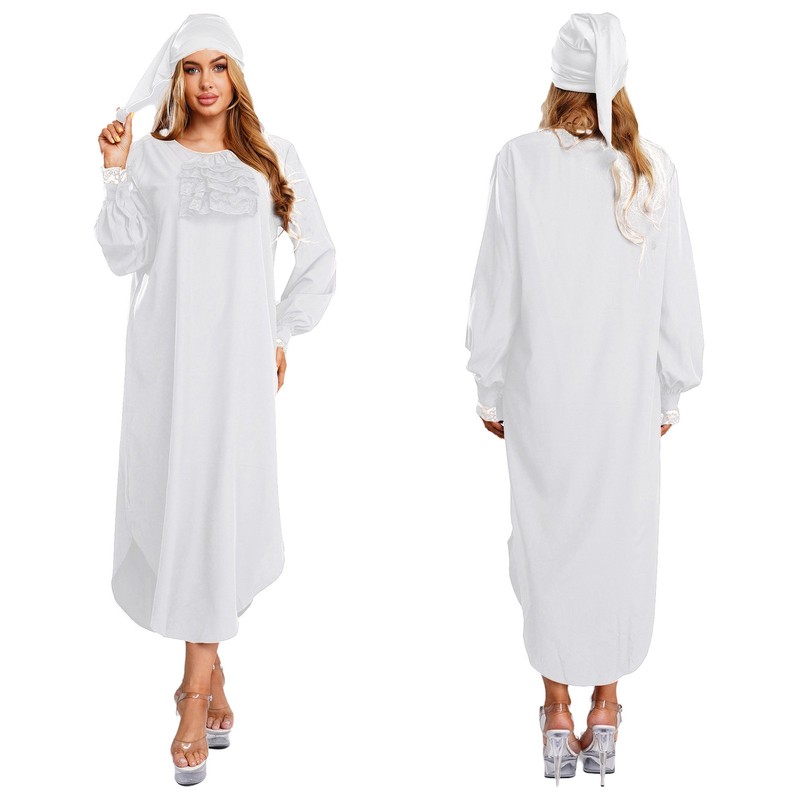 The curved hem design is both stylish and flattering, giving the nightgown a more refined and fashionable look. Come with a nightcap.