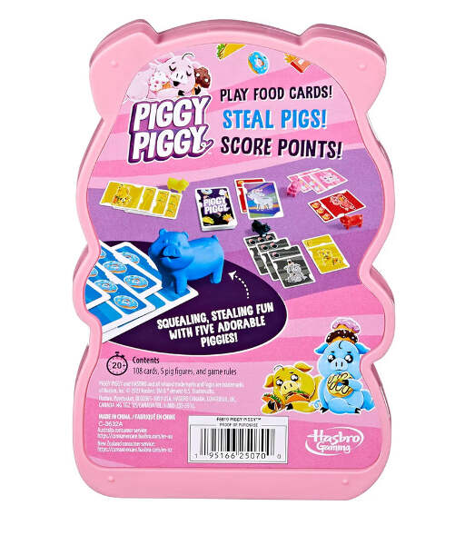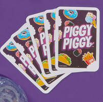 • SQUEALING, STEALING FUN FOR THE WHOLE FAMILY: The Piggy Piggy card game is fast-paced fun with 5 adorable pig figures. Play food cards to try to steal pigs and be the first to score 8 points to win