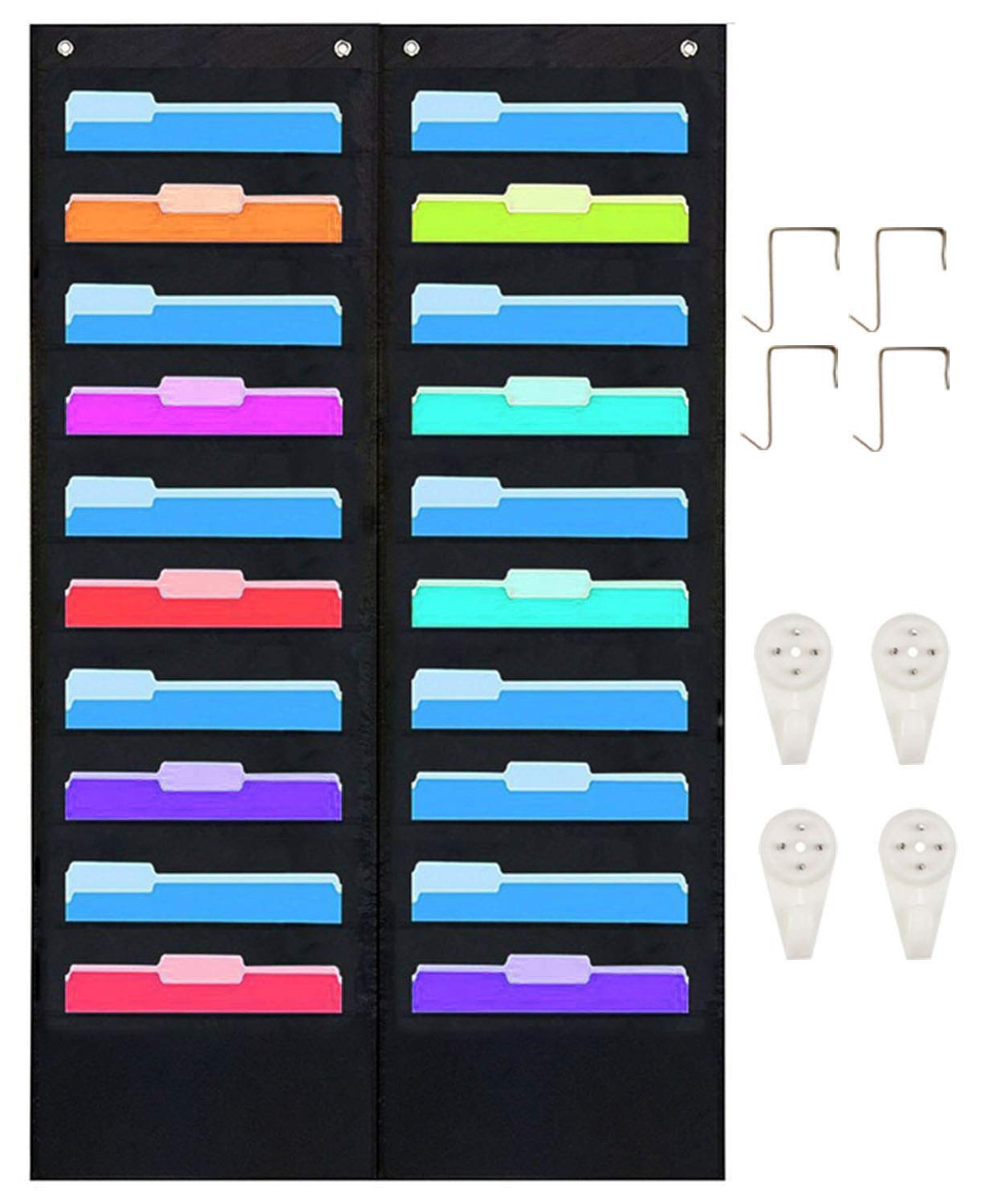 - Hanging file holder folder organizer rack 20 tier pocket meets your need of organization and sorter files, four free over the door and wall mounted hanger, deep pocket allows each pocket to hold up to 500 sheets of new a4 papers