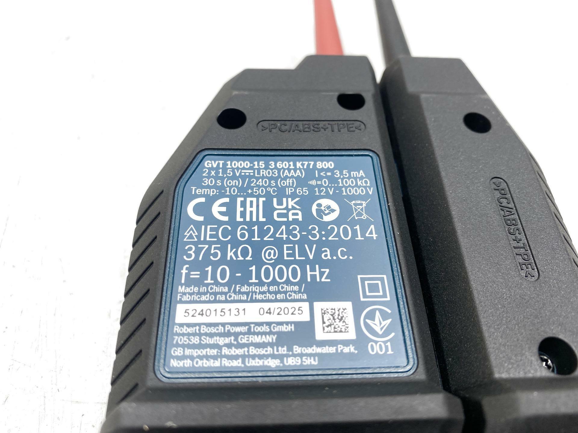 L'OBJET DE L'ENCHÈRE EST : 238395 Testeur de tension BOSCH GVT 1000-15 0601077800 12-1000V AC/DC B-WARE