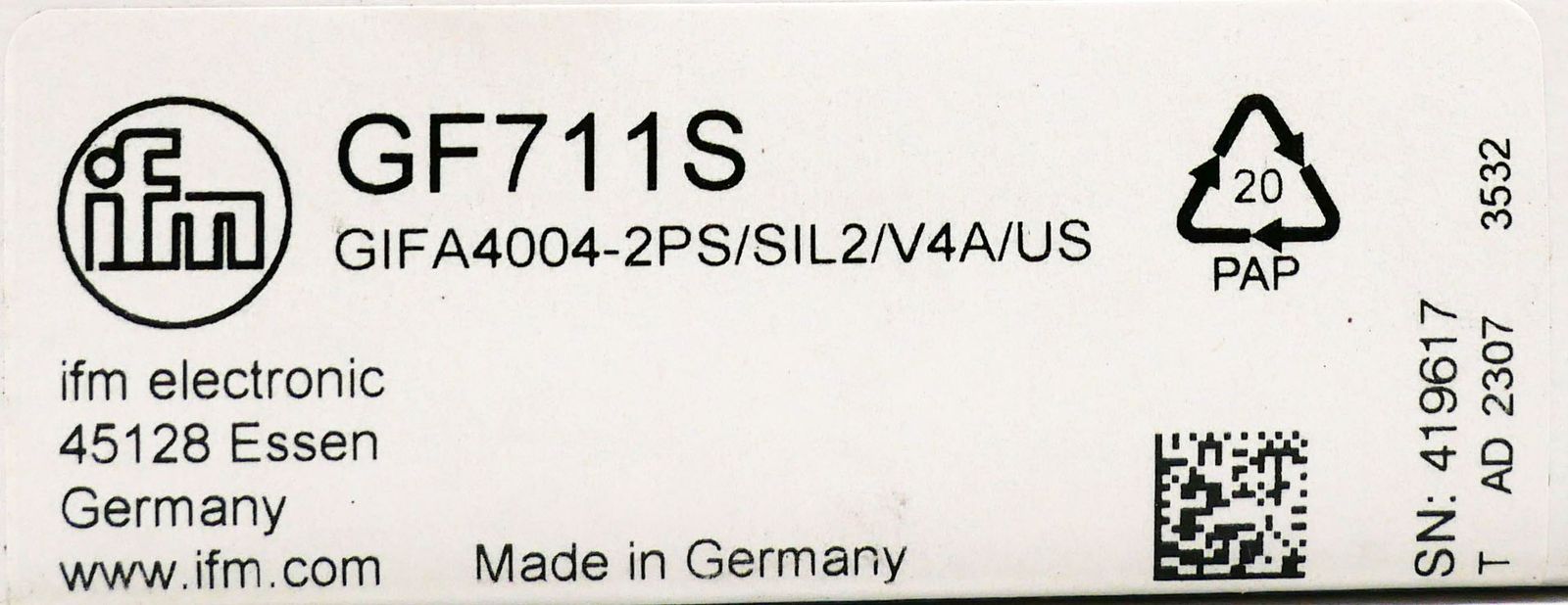 ifm GF711S GIFA4004-2PS/SIL2/V4A/US Induktiver Sicherheitssensor -unused-