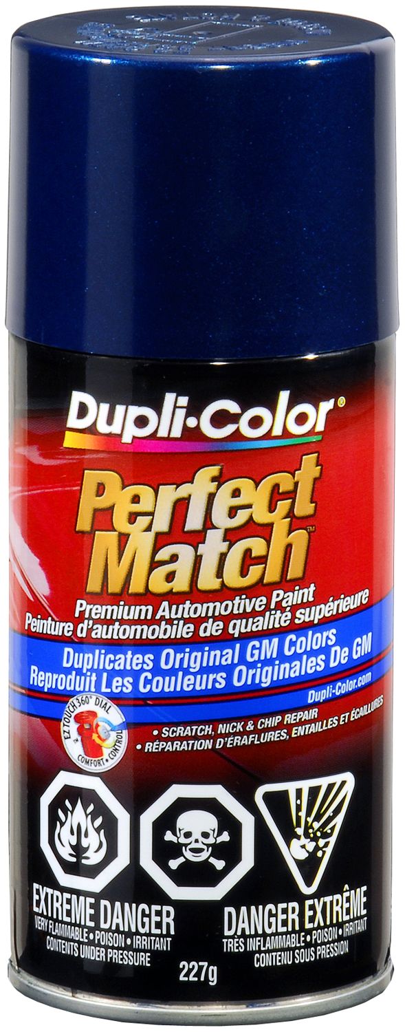 Touch Up PaintDupli-Color Perfect Match Premium Automotive PaintDupli-Color Perfect Match Premium Automotive Paint; Dark Blue Metallic; Paint Code WA8264; 8 oz. Aerosol;SPECIFICATIONS:OEM Color Code: WA8264WARNING CA Proposition 65: YesWARNING CA Proposition 65 Message: WARNING: This product contains chemicals known to the State of California to cause cancer and birth defects or other reproductive harm.FEATURES:Features EZ Touch 360 Deg. NozzlePremium Automotive PaintDuplicates Original GM ColorsEnsures Maximum CoverageDry To Touch In 30 Minutes/Handle In 1 HourIdeal For Large Touch-Ups And Vehicle AccessoriesPerfect Match Clear Coat Is RecommendedDupli-Color(R) Perfect Match(TM) Premium Automotive Paint is an easy-to-use, high-quality, fast-drying, acrylic lacquer aerosol paint specially formulated to exactly match the color of the original factory applied coating. Ideal for use on all OEM paint surfaces, Perfect Match is available in a complete line of exact-match colors for current and late model import and domestic vehicles, making this product ideal for both small scale vehicle touch-up and for painting vehicle accessories.In 1938 Army Lt. Colonel Sigmund E. Edelstone had an innovative idea... selling automotive touch-up paint that was an exact match to the original automotive manufacturers finish. He started the business in his garage, filling touch-up bottles with bulk paint that he purchased from automotive paint manufacturers and thus the Dupli-Color Brand was born. The Dupli-Color Brand has been the #1 brand providing exact-match touch-up paint ever since. Over the last 70 plus years, Dupli-Color has evolved into a complete automotive enthusiast paint line offering coatings for interior, exterior and under-the-hood applications. The heritage of duplicating automotive manufacturers paint colors has also evolved and Dupli-Color is now the exclusive exact-match touch-up paint supplier to the majority of automotive manufacturers. Dupli-Color is widely known as an industry leader in the automotive coatings aftermarket for innovative technology and products. Whether it's the Scratch Fix 2in1 patented roller ball technology, the Danvern EZ Touch Fanspray nozzle, the ground-breaking Paint Shop Finish System or the new water-based BED ARMOR DIY truck bed liner; Dupli-Color continues to provide quality, easy-to-use solutions that deliver professional results for the do-it-yourselfer. The Dupli-Color family of products also includes other trusted brands such as Krylon, VHT and Tri-Flow. Krylon has been innovating the aerosol paint industry for over 60 years with such products as H20 Latex Spray Paint, Fusion for Plastic and Rust Tough, just to name a few. The VHT brand offers Very High Temperature paint products for high performance applications and Tri-Flow provides superior quality lubricants, cleaners and degreasers. All together, these brands provide solutions for virtually every project that takes place in your garage. Whether it's restoring, restyling or protecting, the Dupli-Color product family has it covered!