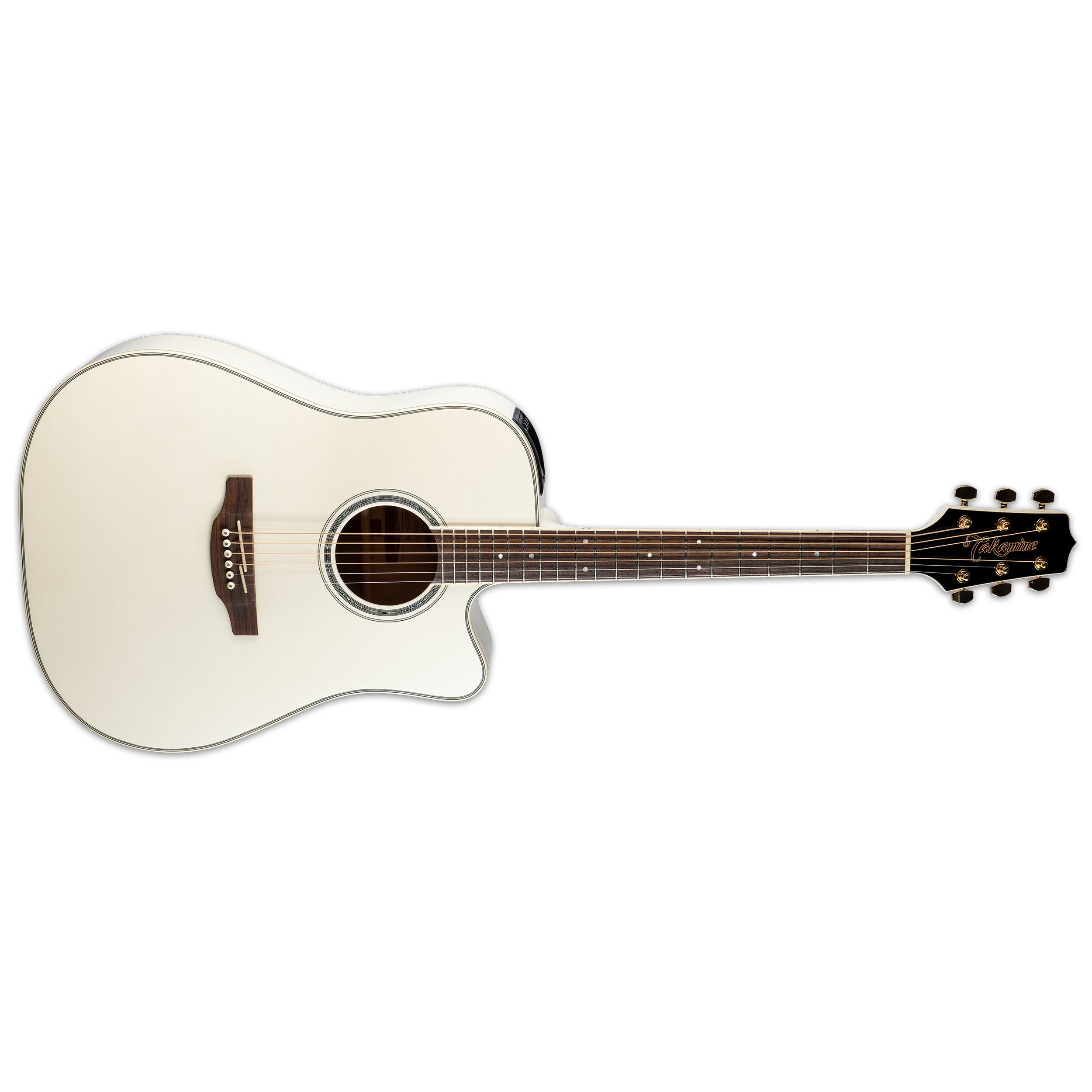 Maple back and sides are the foundation of this silky sounding guitar in Takamine's high-value G-Series. Finished in elegant gloss pearl white, this dreadnought guitar features ivoroid binding over the body, fingerboard, and headstock. Touched with gold hardware, pearl dot inlays, and a beautiful abalone rosette, this guitar exemplifies elegance and striking simplicity. The tonewoods create a very shimmering, punchy, bold sound that is great across a wide variety of musical styles that is 100% Takamine. It comes fitted with our legendary TP-3G electronics to make live performance a thing of ease. This guitar ships with a convenient, sturdy gig bag so you can keep it looking wonderful for years to come. Also available in a 12-string version.