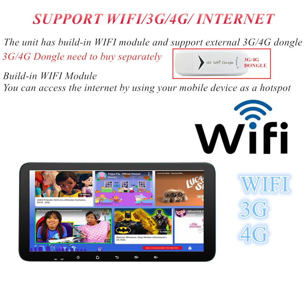 WiFi/3G/4G | - Connector: On the Back - WiFi: Built-in WiFi Modem, support 802.11b/g/n - Supports 4G & 3G Internet (4G Dongle and 3G Dongle are not included) |