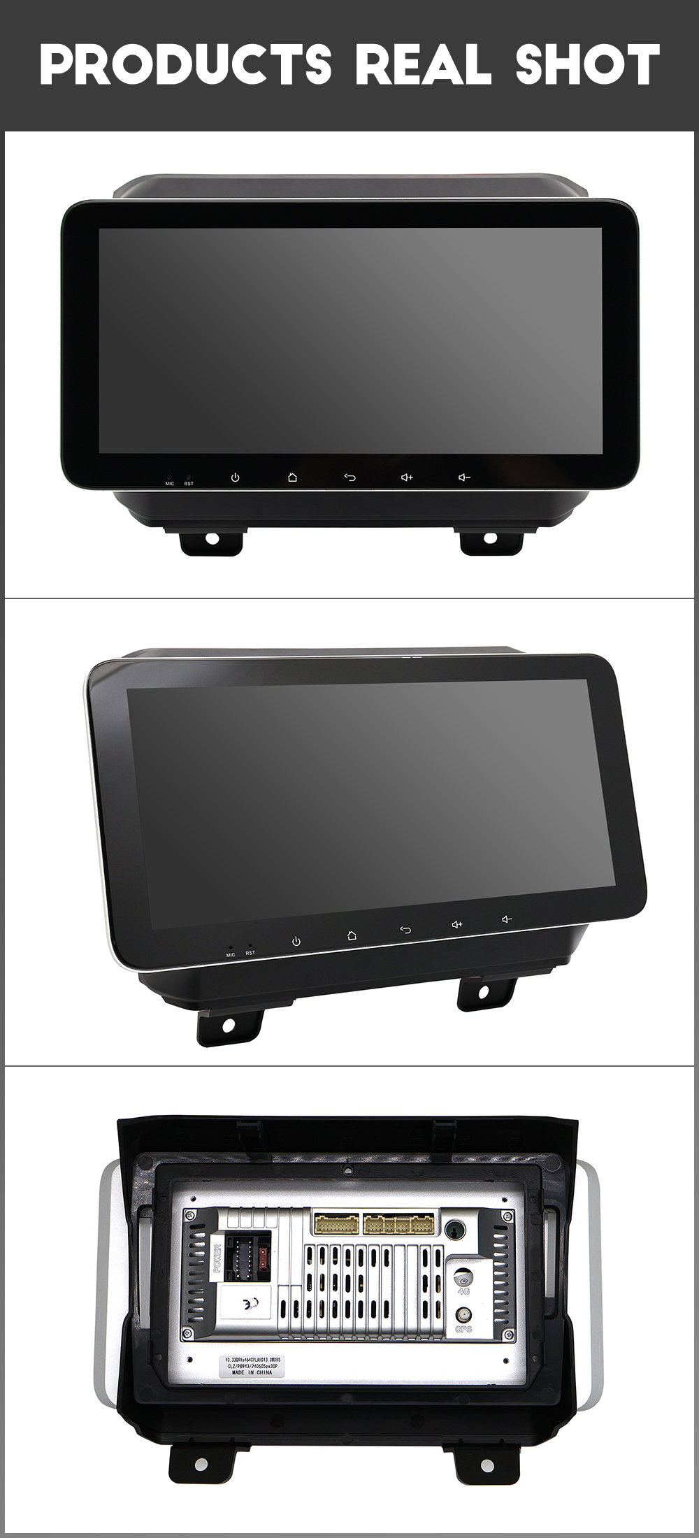 General | - Power Supply: DC 12V (allowance range: 10.8-14.5V) - Max. Current: 10A - Screen Size: 10.33 inch - Front panel Size: As picture show |