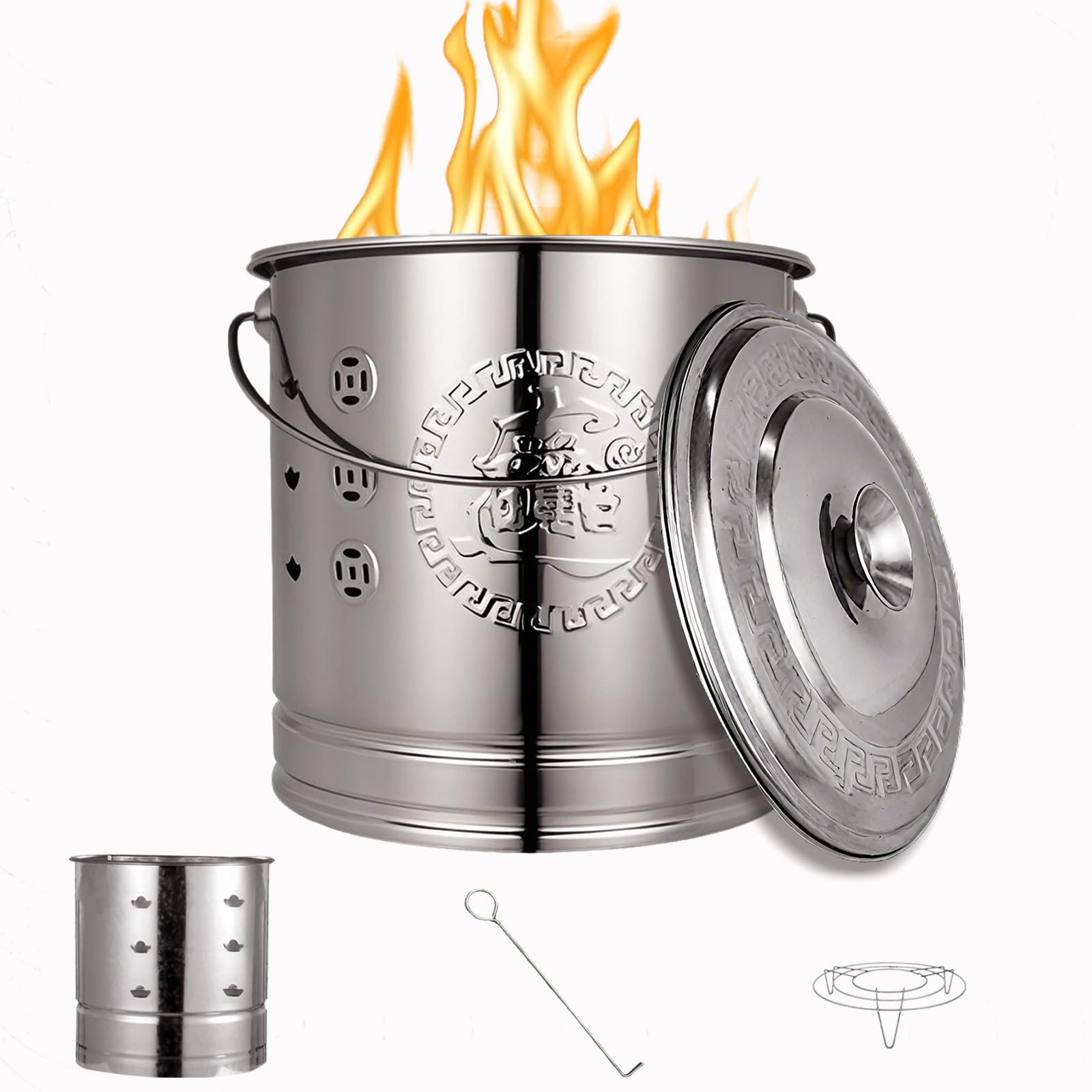 Made of premium stainless steel with a smooth, flat surface, this Garden Incinerator effectively resists rust, simplifies cleaning, and maintains long-lasting shine. Designed with multiple coin and ingot-shaped ventilation holes, it ensures optimal airflow for complete combustion of sacrificial items. The sturdy handle allows for effortless carrying and safe operation. Ideal for gardens, temples, and other open, ventilated areas, it effortlessly burns paper, garbage, fallen leaves, and more.