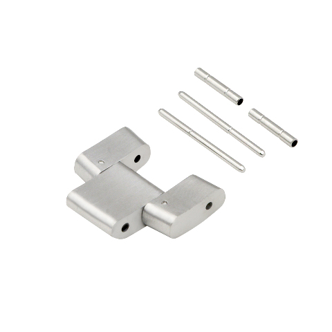The link is constructed from solid stainless steel, ensuring durability. It measures 17mm in width and features a matte/brush finish on all sides. It uses a tube and pins to provide a secure and stable connection to the watch band.