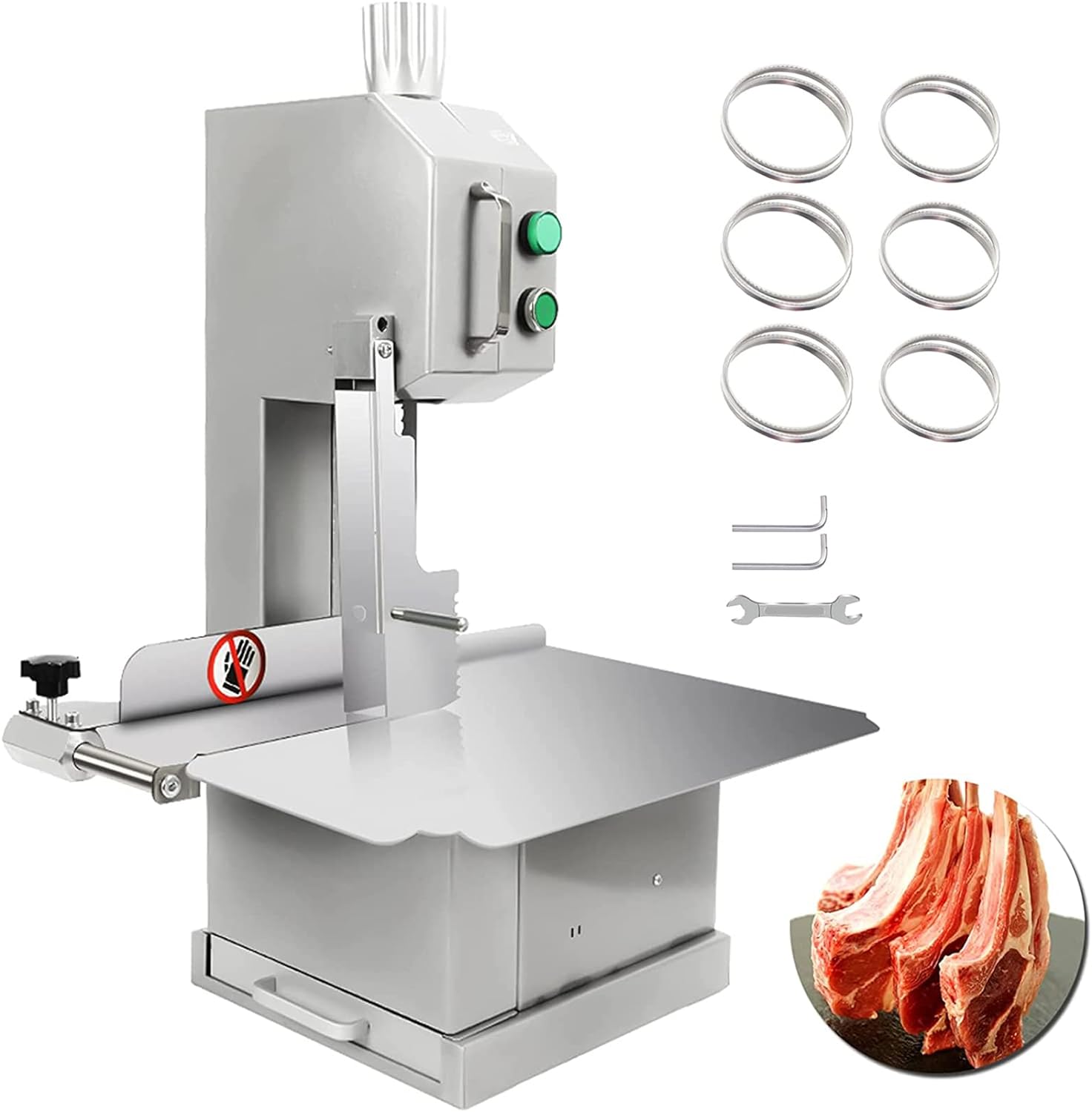 【Wide Application】This 850w commercial bone saw machine can cut large-sized meat products like frozen meat, frozen fish, pork ribs.....etc. it is widely used in home kitchens, butcher, guesthouses, hotels, food processing factories, and slaughterhouses.
