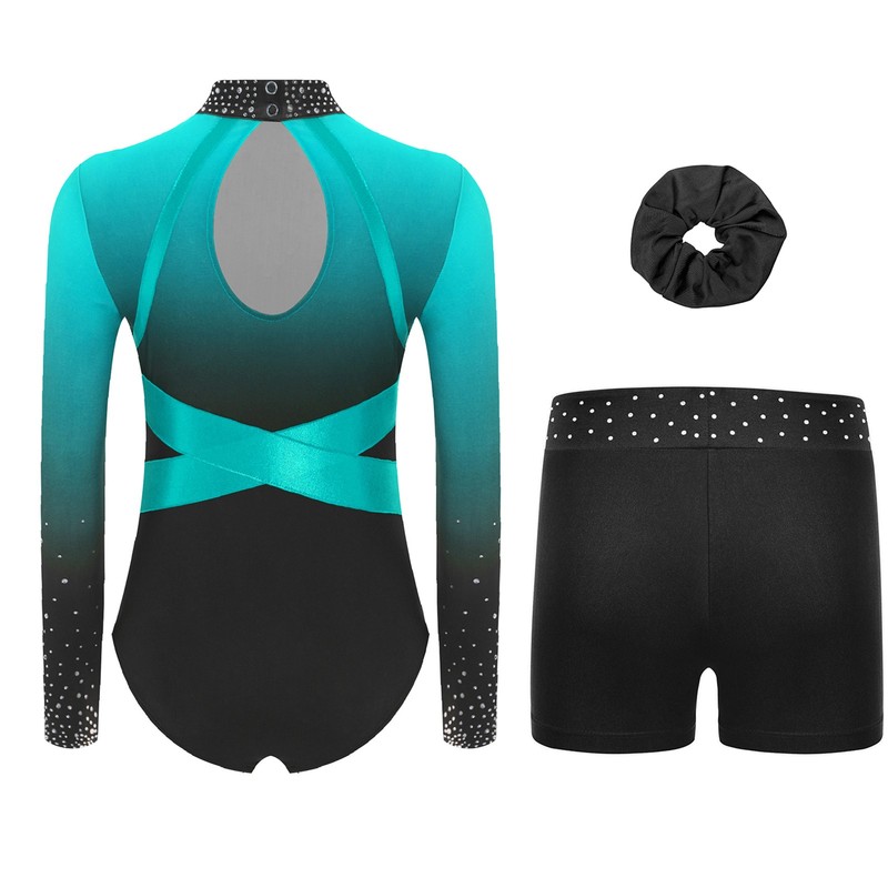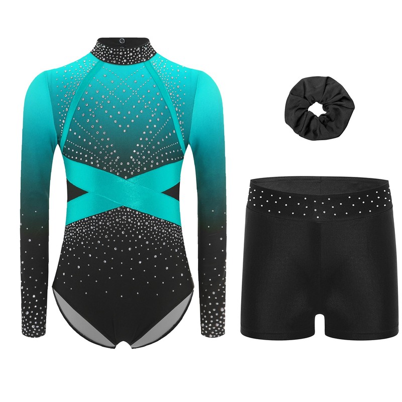 This outfit comes with a hairband and rhinestones waistband shorts. It’s perfect for dance, gymnastics competitions, figure skating, etc.