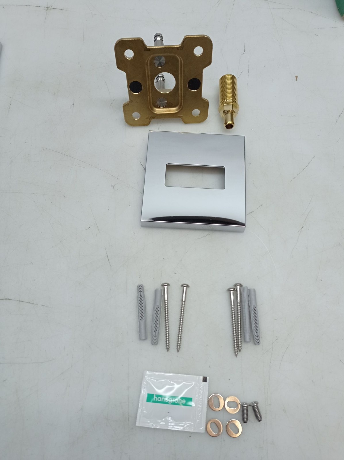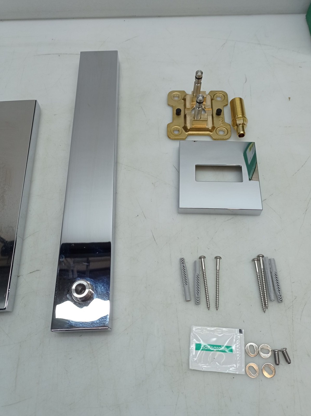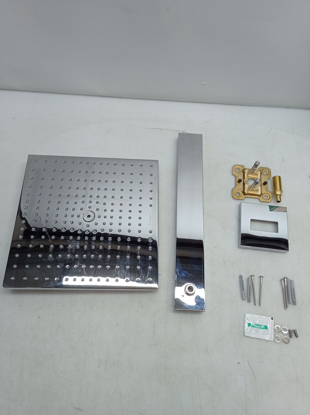 Gut positioniert: der 390 mm lange Brausearm bringt die Kopfbrause mit einem guenstigen Abstand zur Wand in Position