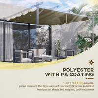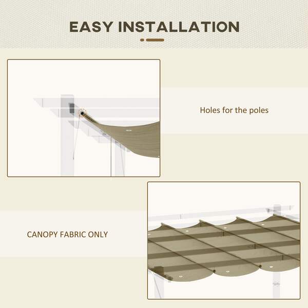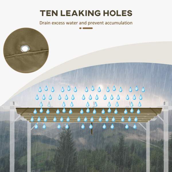 Bringing your pergola back to life is easy with this canopy replacement top from us. Made from polyester, the fabric is durable for extended use, with a plastic coating for protect against mild weathering. The holes on each end make it easy to set up and remove. Comes with drainage holes, so you don't have to worry about water build-up.