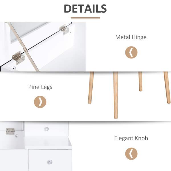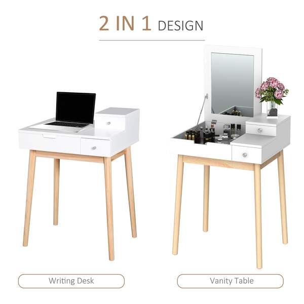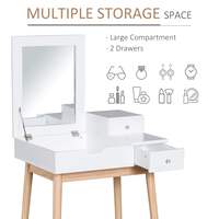 The 2-in-1 dressing table from us allows you to transform usage between a chic dressing table and a spacious writing desk with the flip top design. A large compartment and two slide-out drawers offer generous space for storing your cosmetics, jewellery and essential makeup accessories. Its compact size and stitching color make it a modern stylish addition to your bedroom, bathroom, closet and hallway.