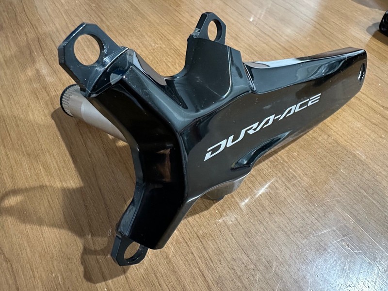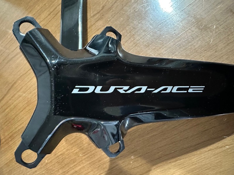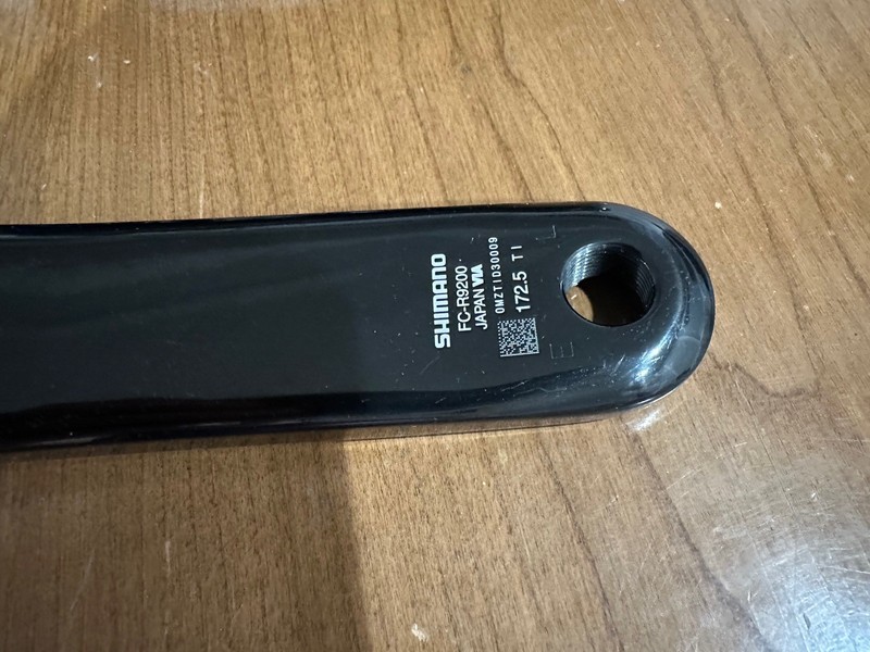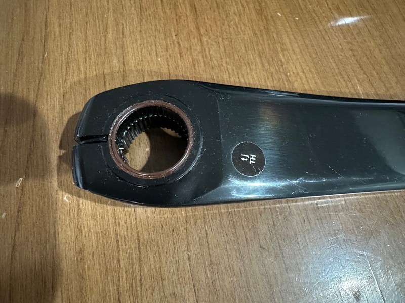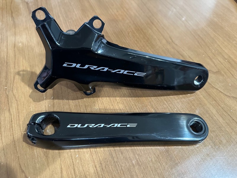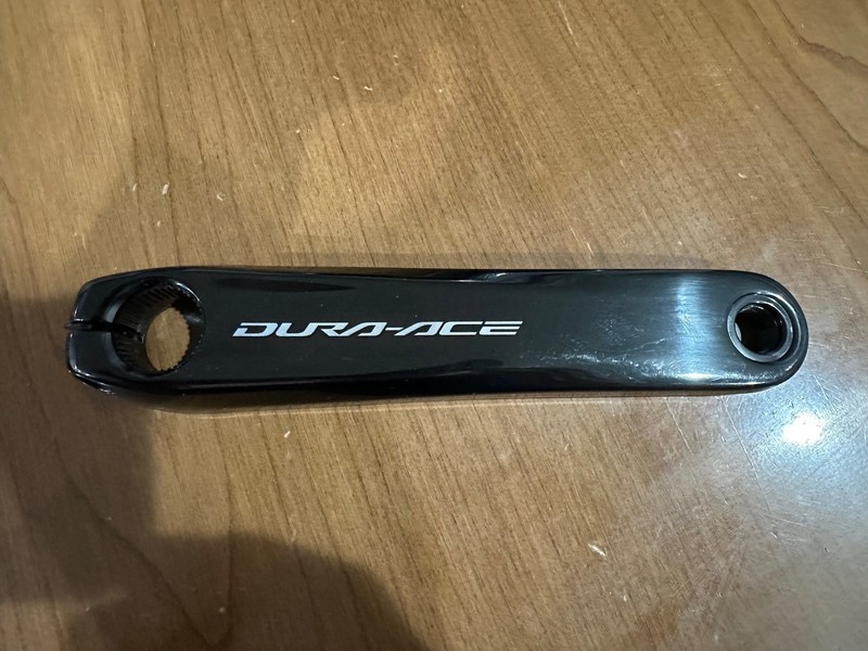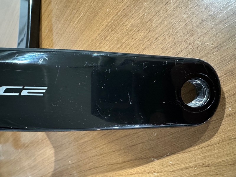 Some grease marks. Take-off from a display bike that was stored. There are markings from storage and the glossy surface shows imperfections easily. There are a variety of small cosmetic marks on the drive-side crankarm, along the flat body of the arm and the beveled edges. Top edge closer to the pedal hole has some more noticeable scratches. Non-drive side is similar, a variety of small marks but no gouging or scraping. NO CHAINRINGS are included. Includes the non-drive side and drive-side crankarm, and fixing bolt. WHAT YOU SEE IS WHAT YOU WILL RECEIVE.