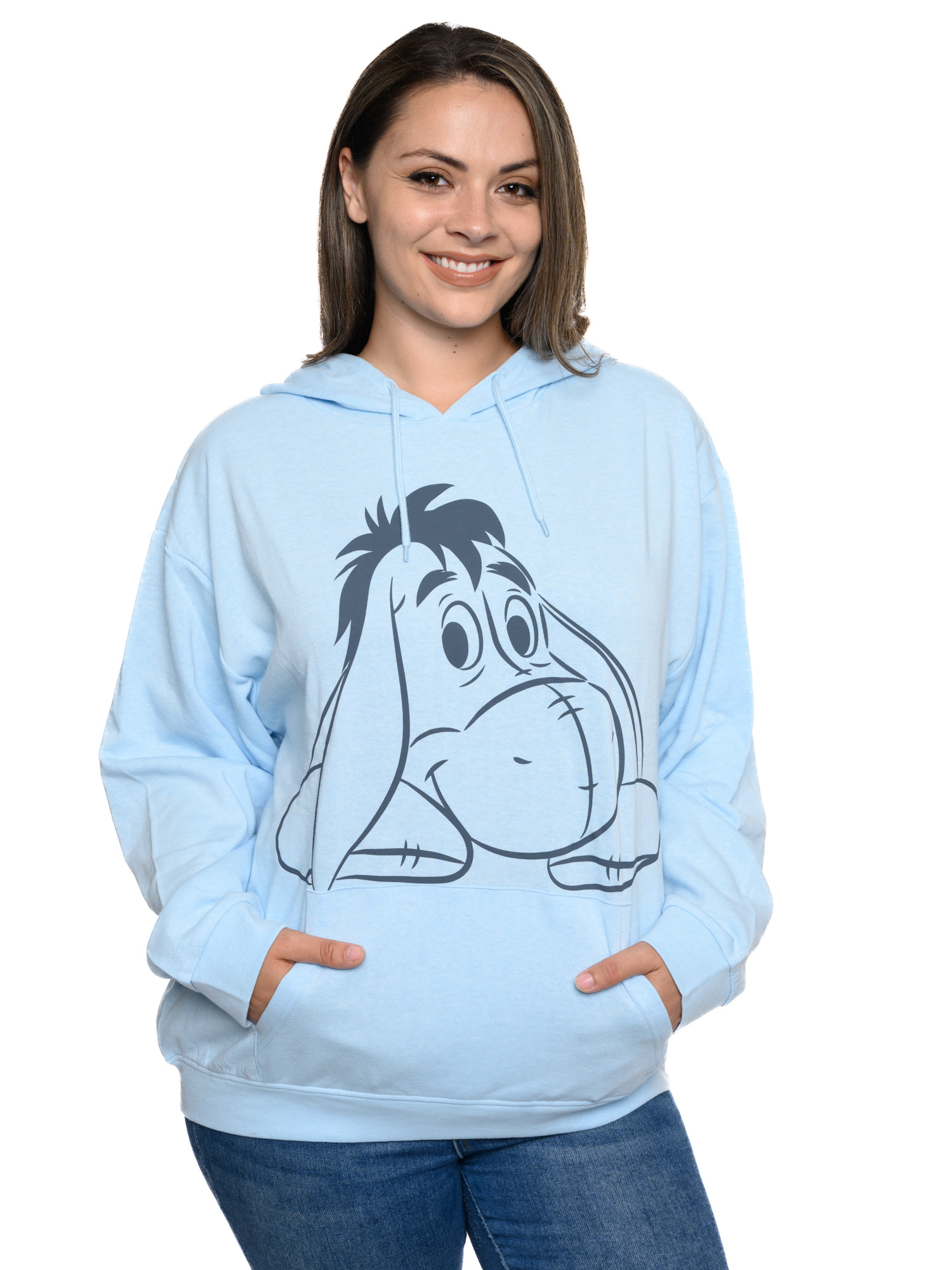 Women’s Disney Eeyore Lightweight Fleece Hoodie – cozy up in this soft, lightweight fleece pullover sweatshirt that brings the lovable charm of Eeyore from Disney to your everyday wardrobe. Ideal for casual wear, lounging, or Disney‑themed outfits, this breathable hooded sweatshirt offers comfort and a cute, nostalgic style — perfect for fans looking for a playful yet practical piece. This versatile blue hoodie makes a delightful gift for women, teens, or Disney lovers who want a comfy, character‑ready look that stands out.