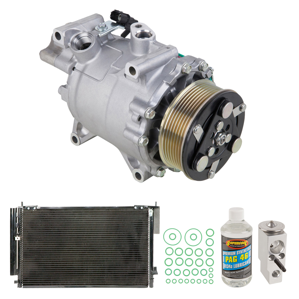 This 5 piece Premium Installers AC Kit includes an OEM new AC compressor, condenser with built in accumulator/drier, expansion device, a bottle of AC compressor oil and a pack of the correct o-rings for your system to prevent leaks. This kit is designed to include all of the right parts to make the repair process easier and save you money. The accumulator/drier used in your AC system is built into the condenser, so to make things easier this kit includes a new condenser with built in accumulator/drier.