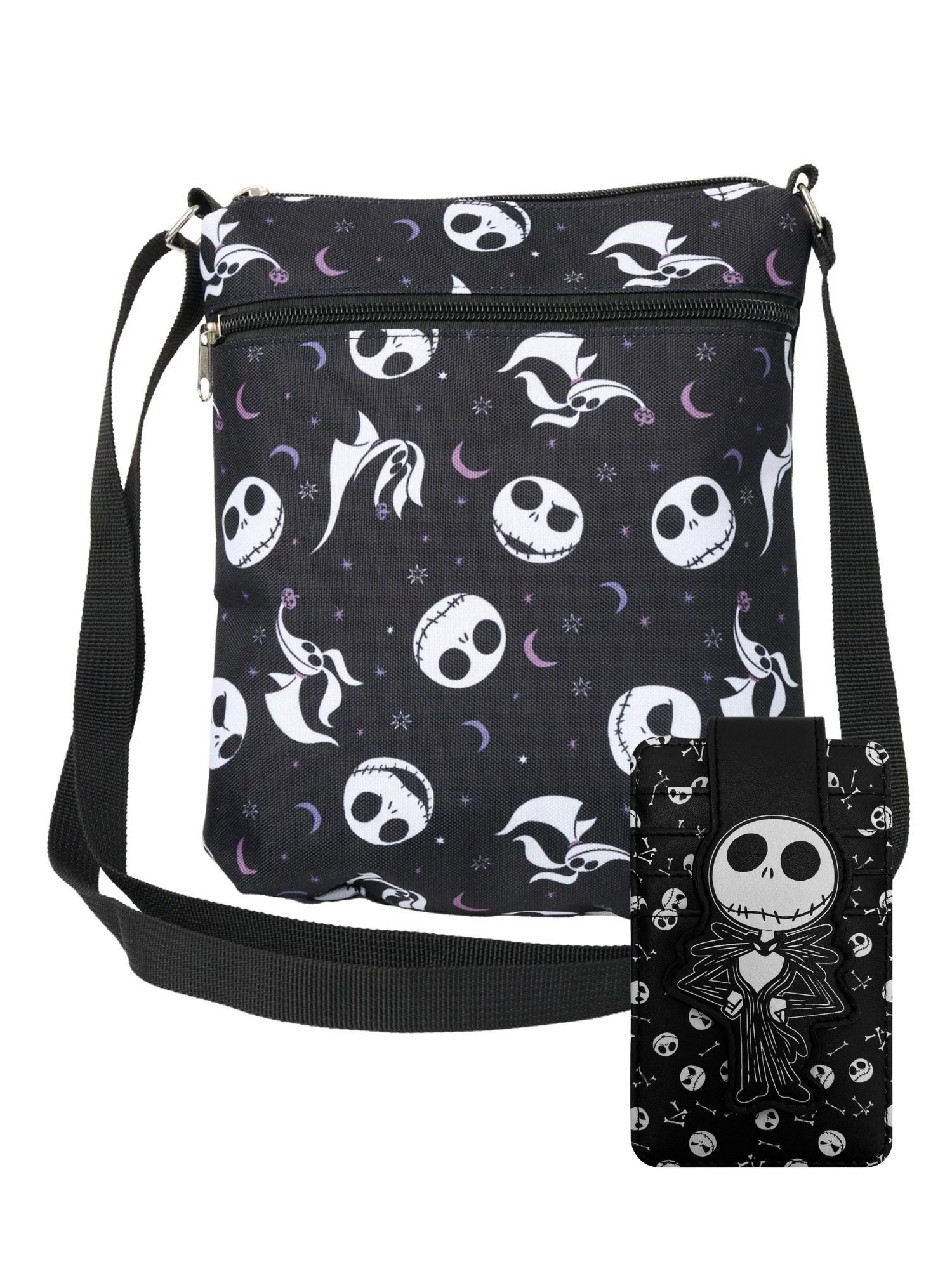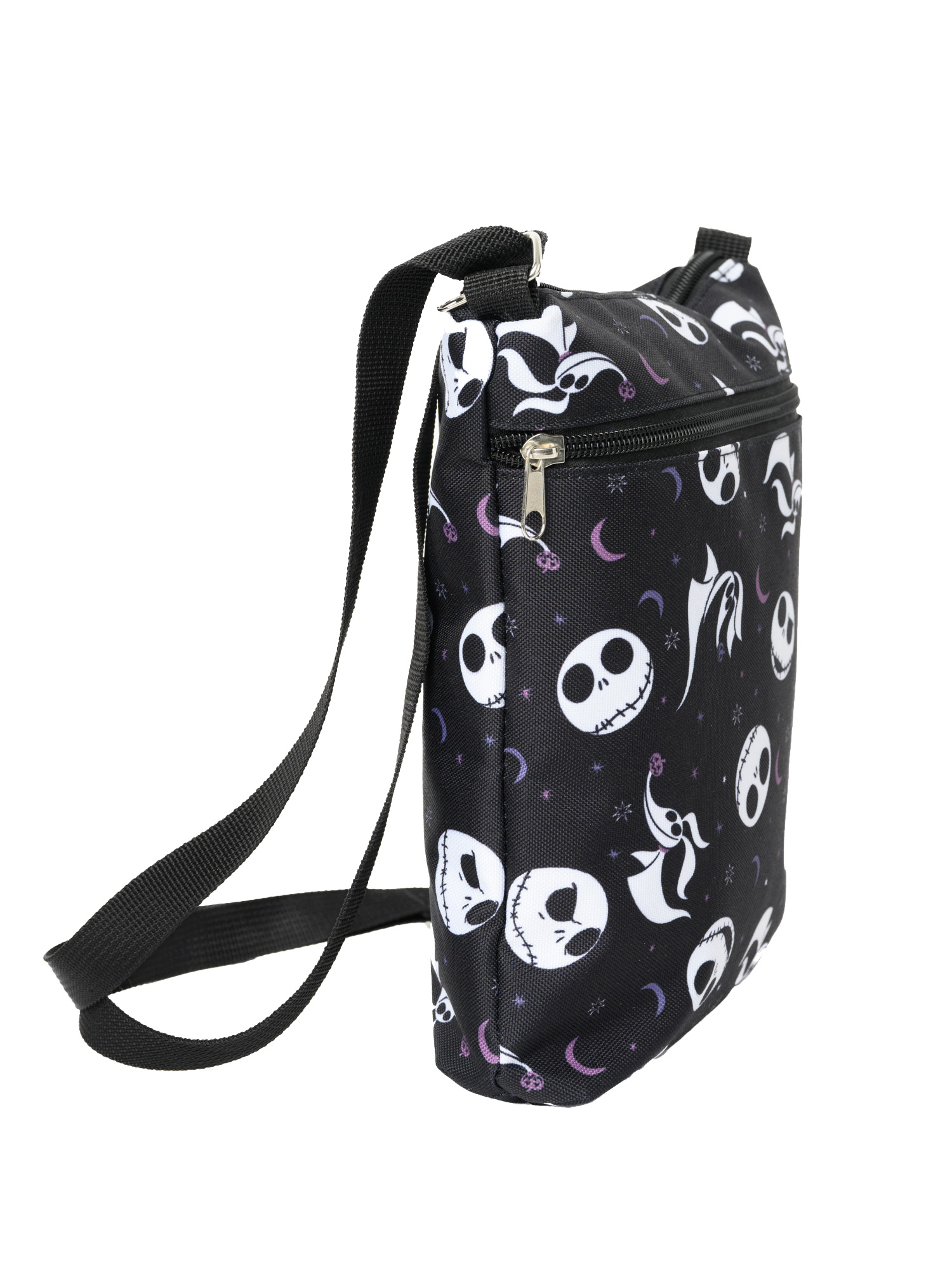 - Crossbody bag featuring an all-over print of Jack Skellington and Zero on a black background including stars.