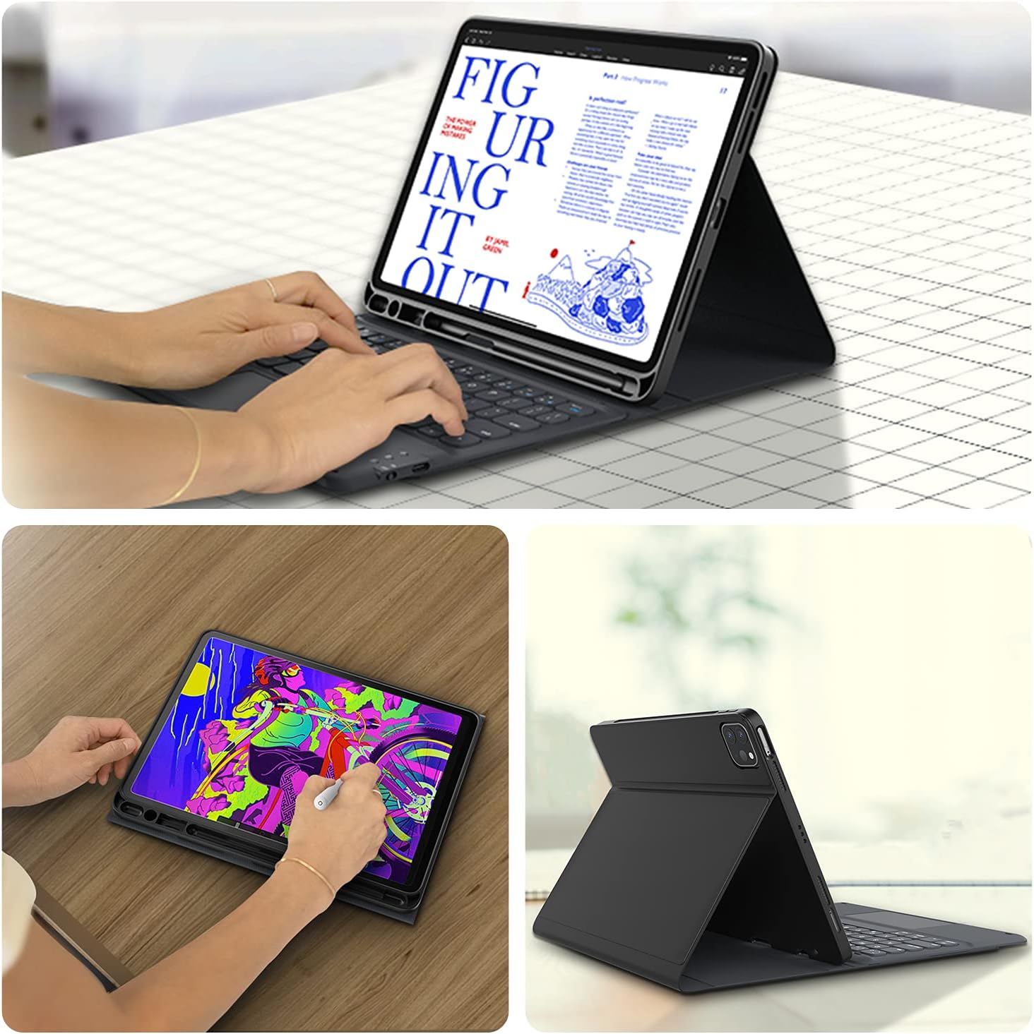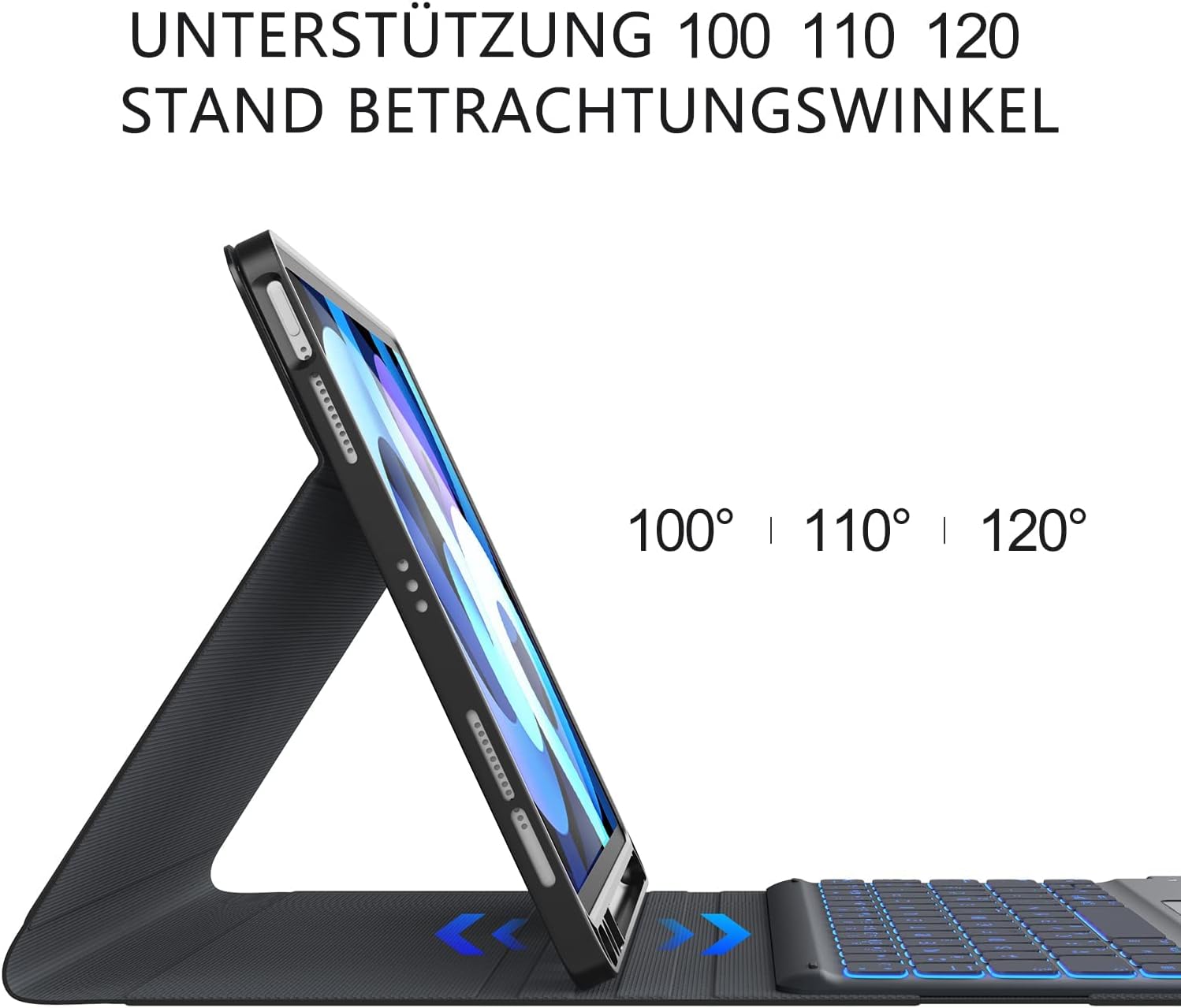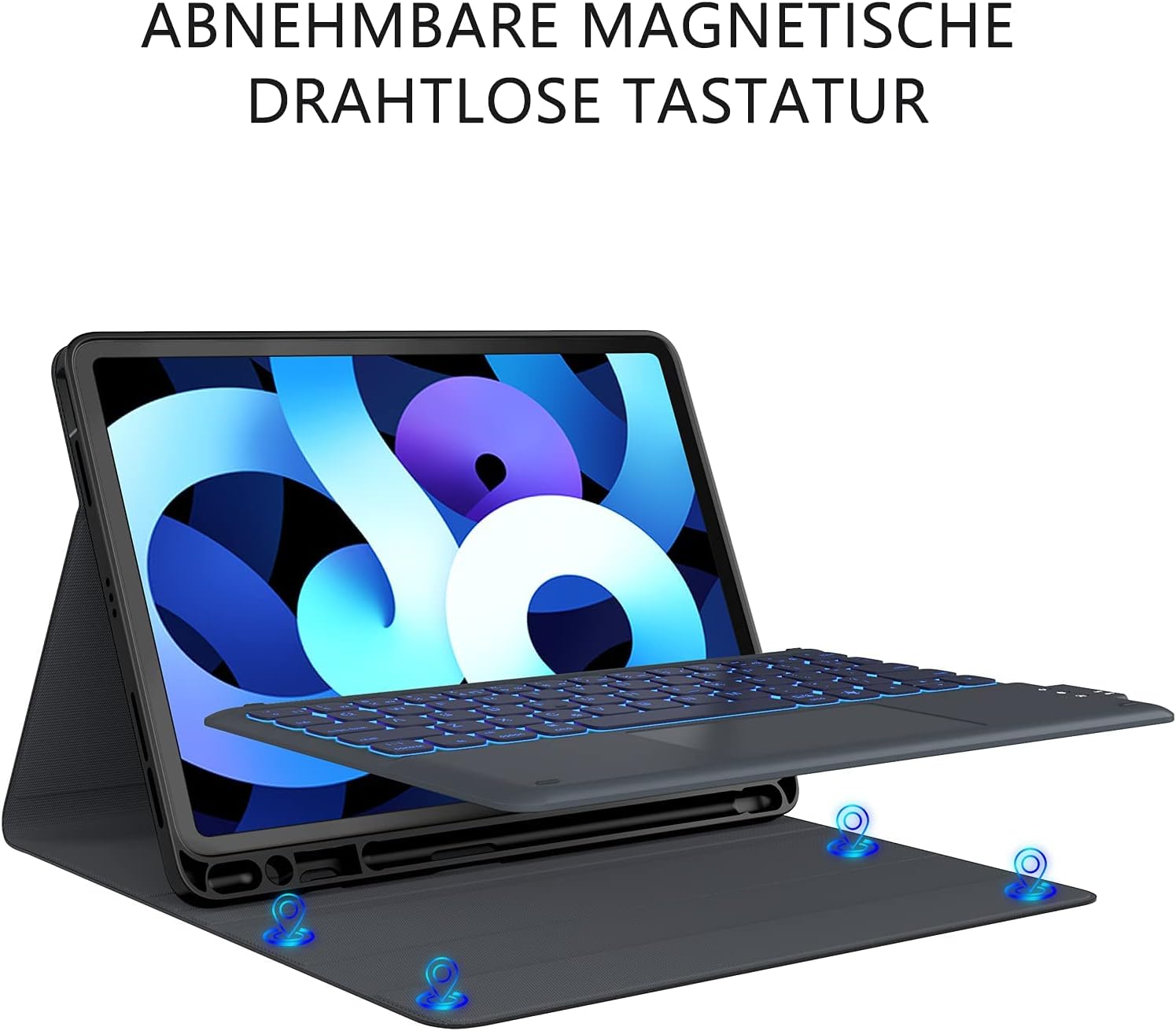 Die abnehmbare Tastaturhülle vereint Leichtigkeit und Funktionalität. Wechseln Sie dank der magnetischen Bluetooth-Tastatur und verschiedenen Blickwinkeln ganz einfach zwischen Laptop- und Tablet-Modus. Vielseitigkeit und Komfort sind garantiert.