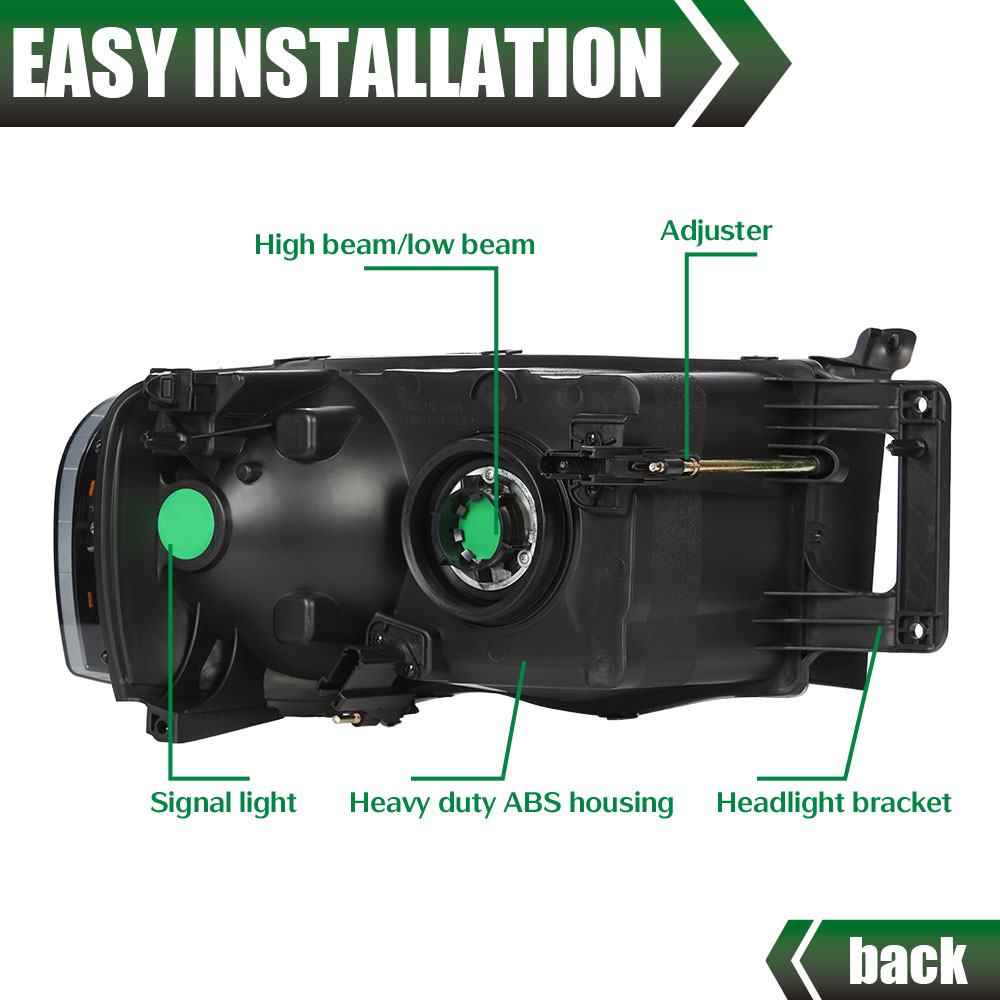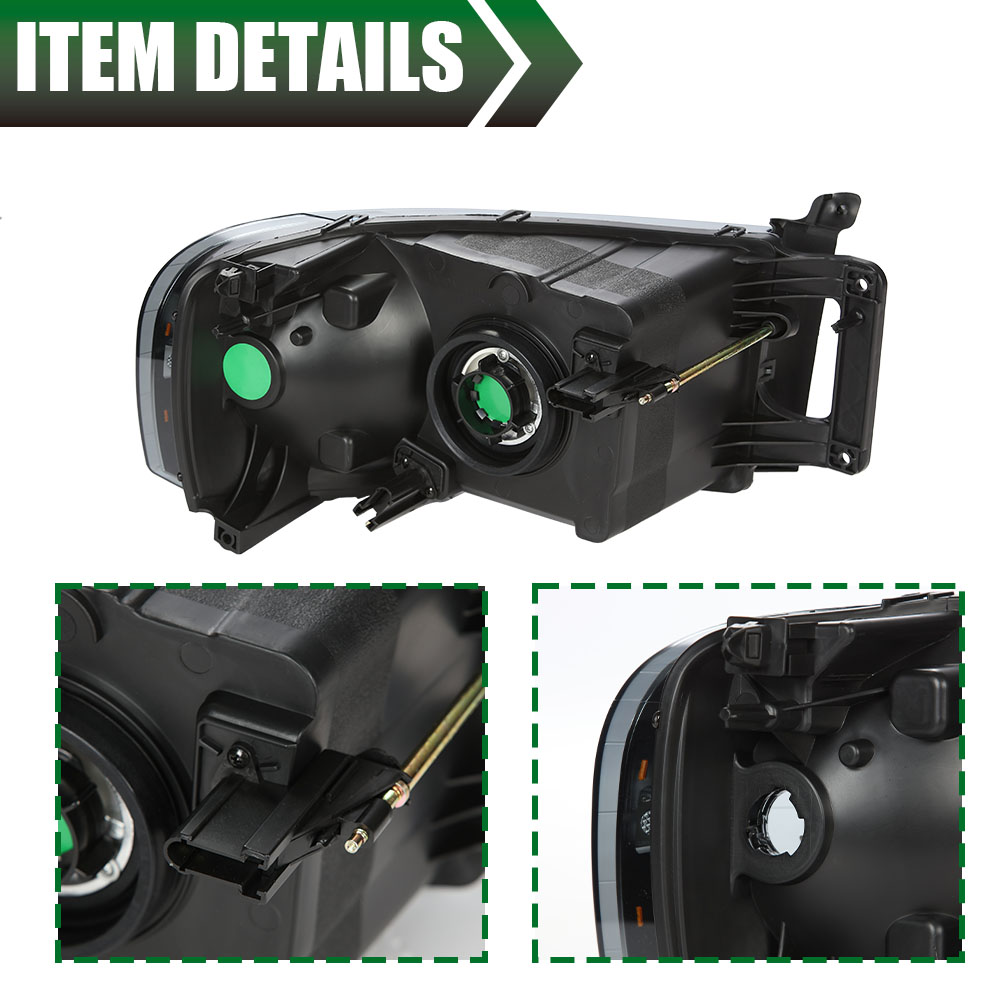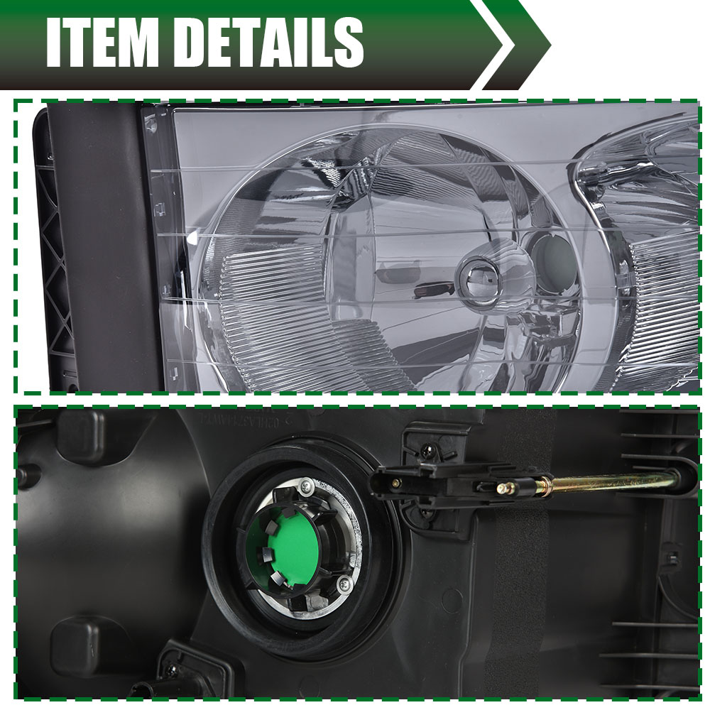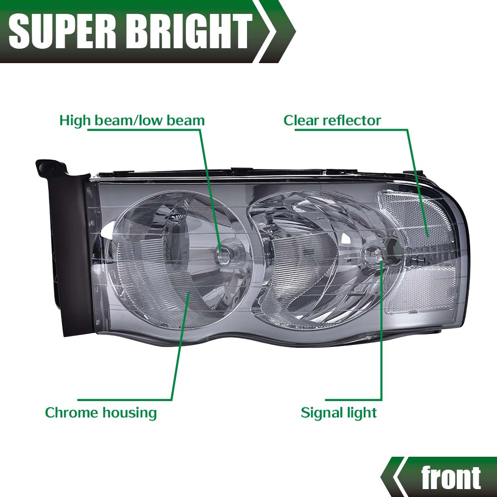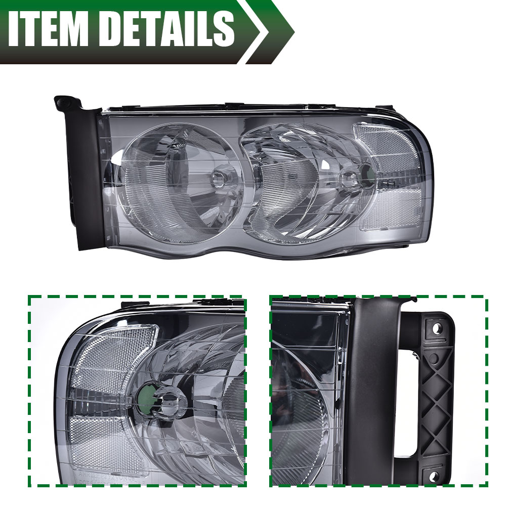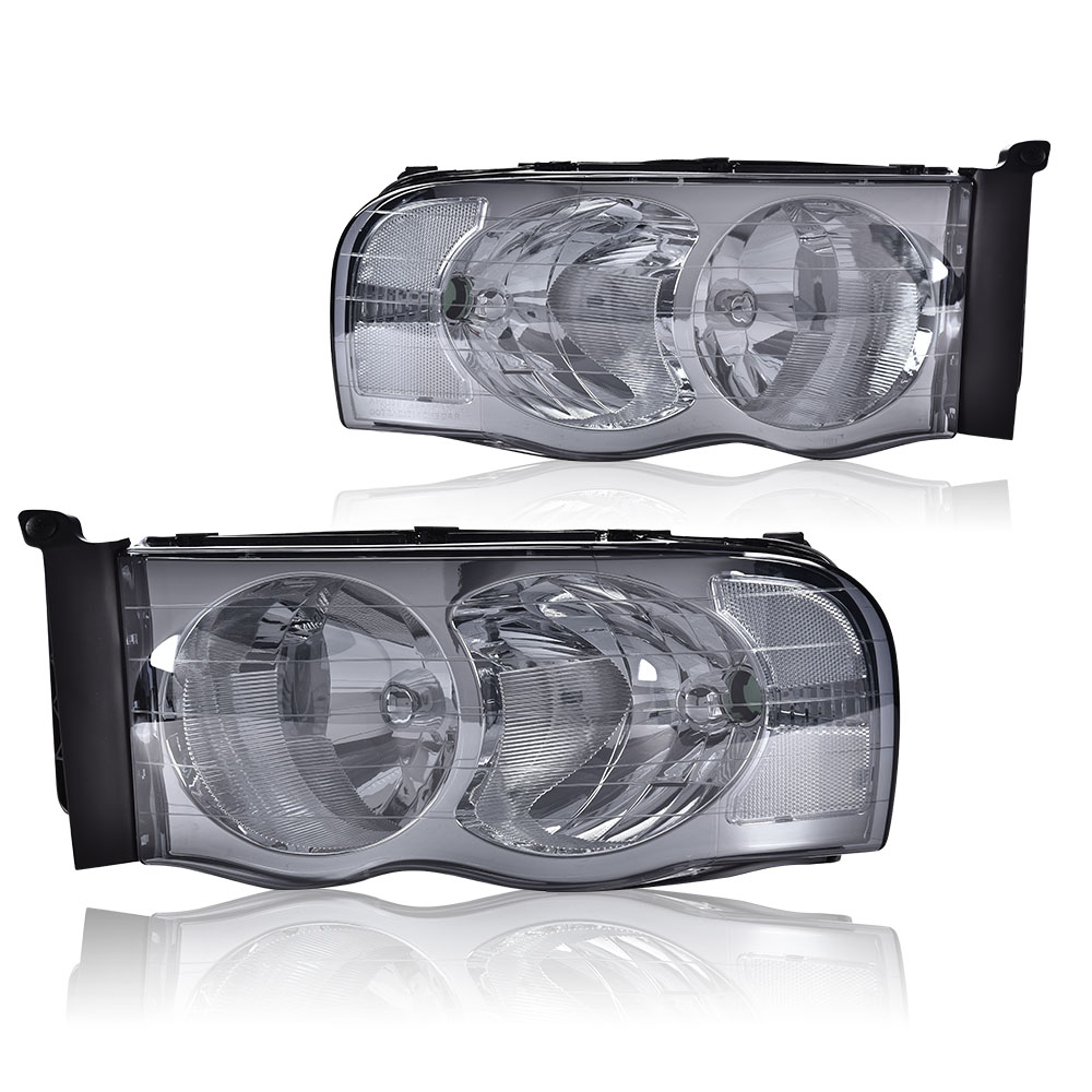 Fit For 02-2005 Dodge Ram 1500 2500 3500 Smoke Lens Chrome Headlights Left+Right