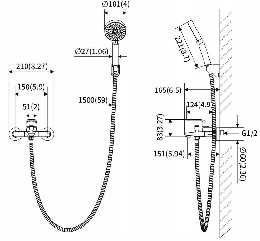 Armatura wannowa jest wyposażona w 5 funkcji słuchawki prysznicowej.