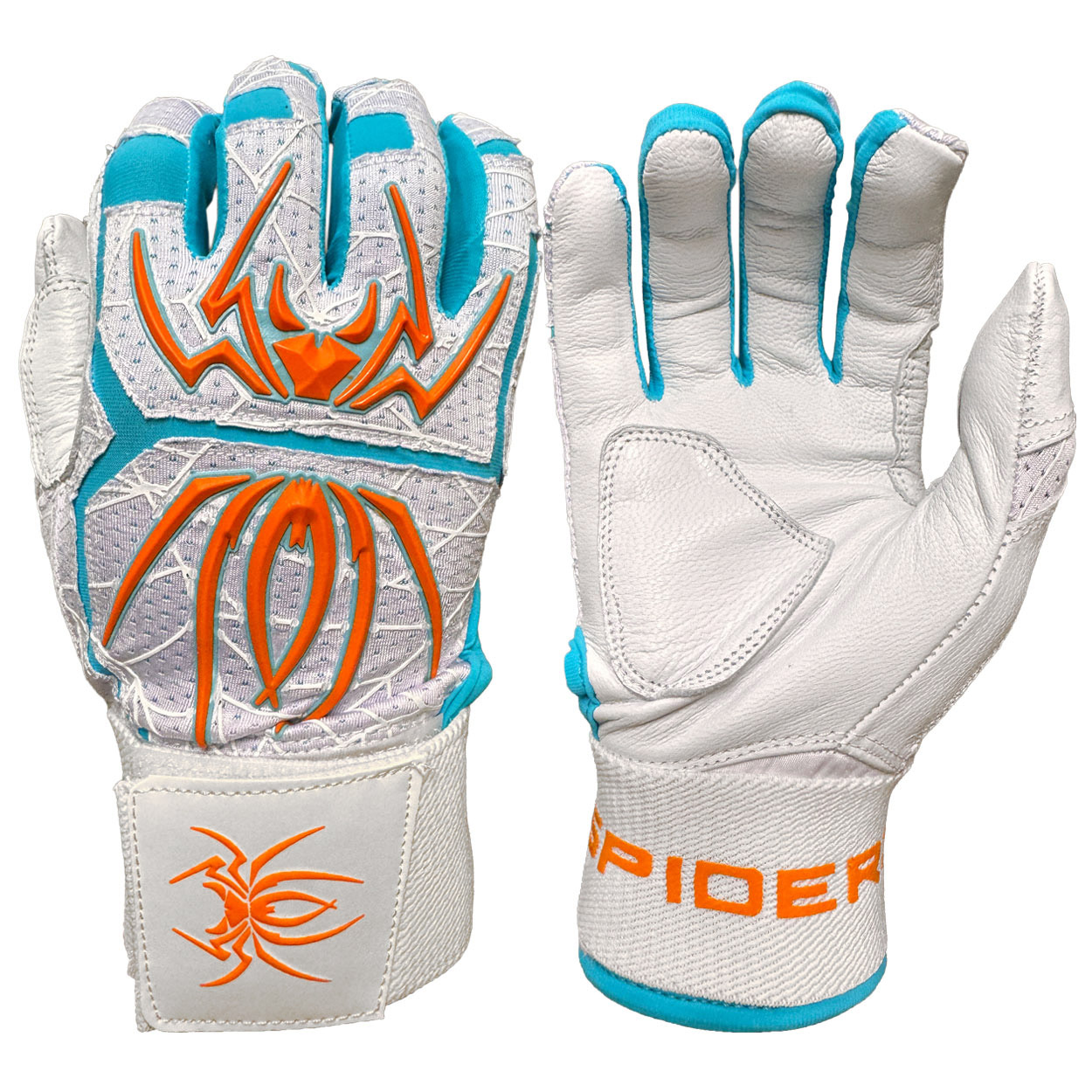 The all new ENDITE X batting gloves from Spiderz feature a long wrist cuff with long and wide, wrap-around strap for support and a smooth leather palm.