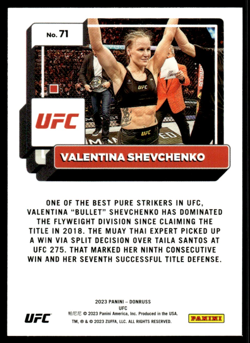 | 2023 Donruss UFC Valentina Shevchenko #71 12662 |