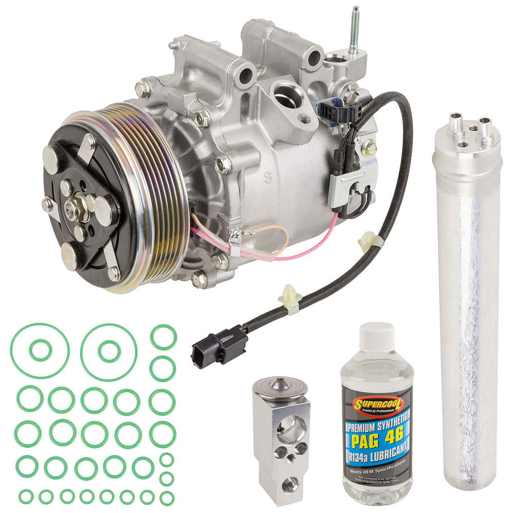 This 5 piece Premium Installers AC Kit includes an OEM new AC compressor, accumulator/drier, expansion device, a bottle of AC compressor oil and a pack of the correct o-rings for your system to prevent leaks. This kit is designed to include all of the right parts to make the repair process easier and save you money.
