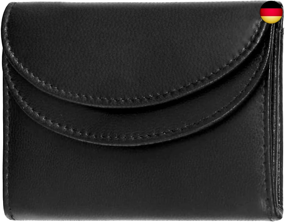 Fa.Volmer ® RFID Minibörse aus Echt-Leder - Kleine Geldbörse in schwarz mit Hightech-Silbergewebe #Mini-Comfort