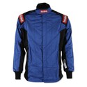 The RaceQuip 9161 series Chevron-5 multi-layer SFI-5 racecar Driver's fire suit jacket is made up of an outer layer of durable (Made With Nomex) and a soft, comfortable and lightweight (Made With Nomex) liner with Chevron pattern box quilting. The stylish modern Euro design is accentuated with black trim Euro epaulets, black side panels, and black (Made With Nomex) cuffs. The side panels feature knit stretch fabric for flexibility in the torso and the 180 Deg. floating arm gussets increase flexibility in the arms. The Chevron-5 jackets feature a high quality, heavy duty (Made With Nomex) backed brass, two-way zipper installed with a double overlap for a more secure front opening. Exceeds SFI 3.2A/5 specs. Available in Black, Red or Blue with Black accents. Manufactured in sizes Small - 3X-Large (refer to sizing chart). Note that sometimes these materials are referred to as "fireproof", but actually all auto racing safety gear is "fire retardant".