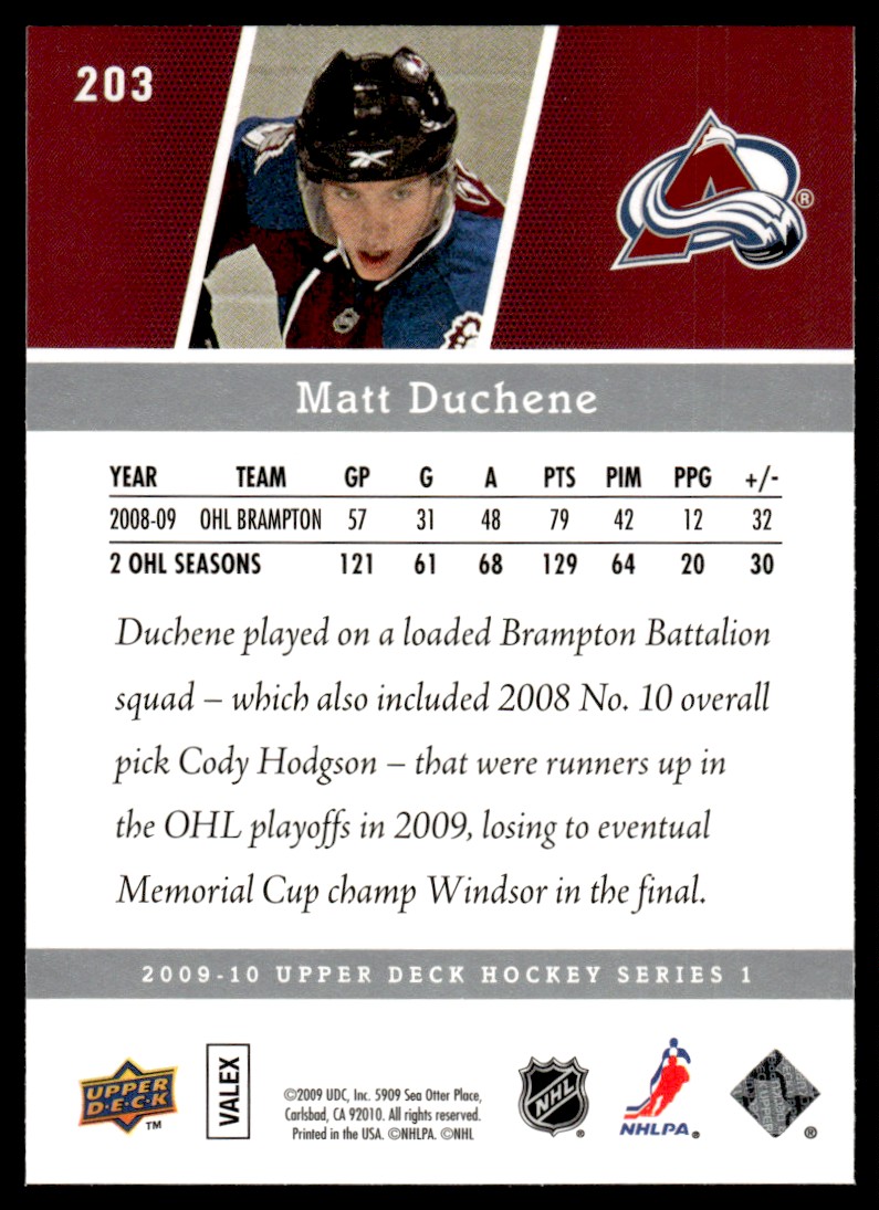 2009-10 Upper Deck Young Guns Matt Duchene Rookie Colorado Avalanche #203