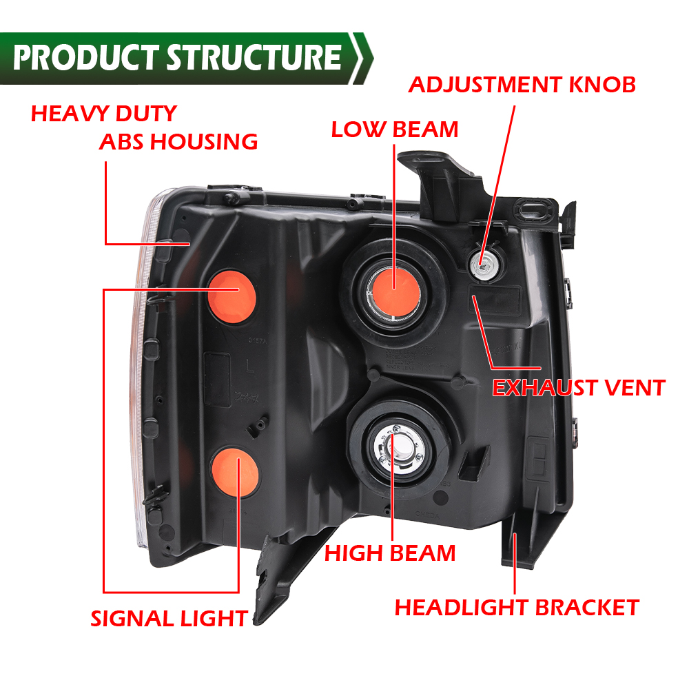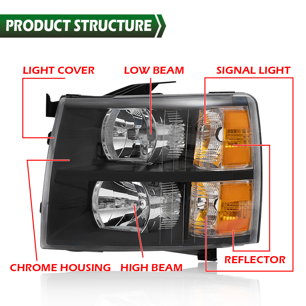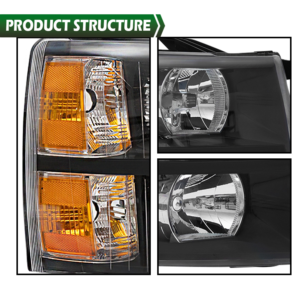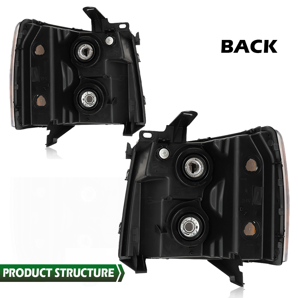 Fit For 2007-2014 Chevy Silverado 1500 2500 HD Headlights Headlamps Left+Right