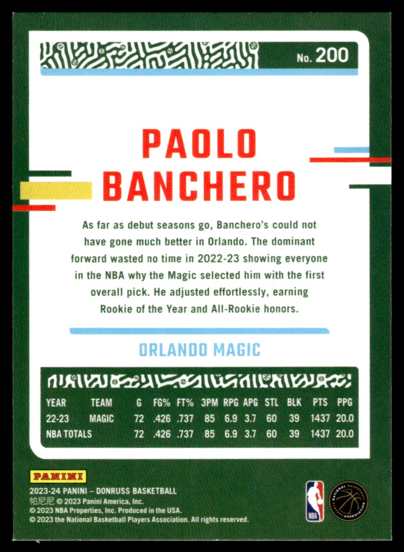| 2023-24 Donruss Paolo Banchero Orlando Magic #200 22622 |