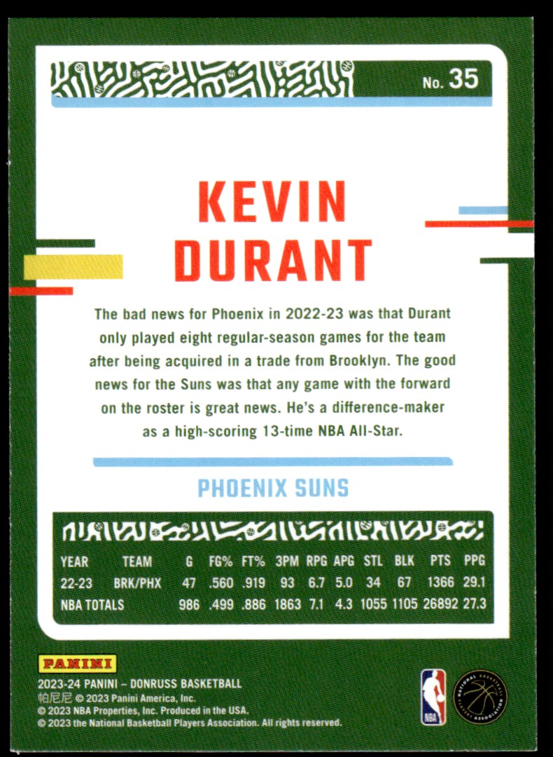 | 2023-24 Donruss Kevin Durant Phoenix Suns #35 22693 |